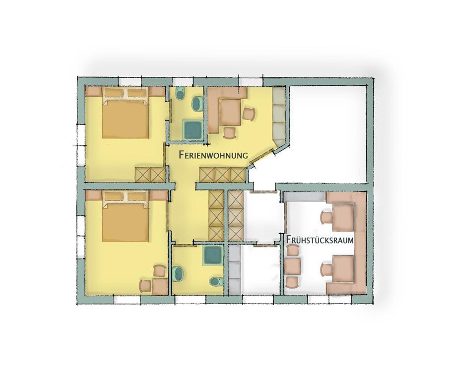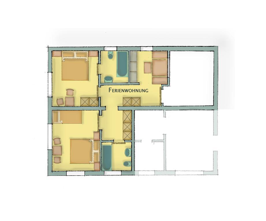 Holiday apartment suitable for 1-4 persons, 60m², lounge/kitchen, 2 bedroom with bathroom/WC and shower/WC balcony, Sat-TV.,