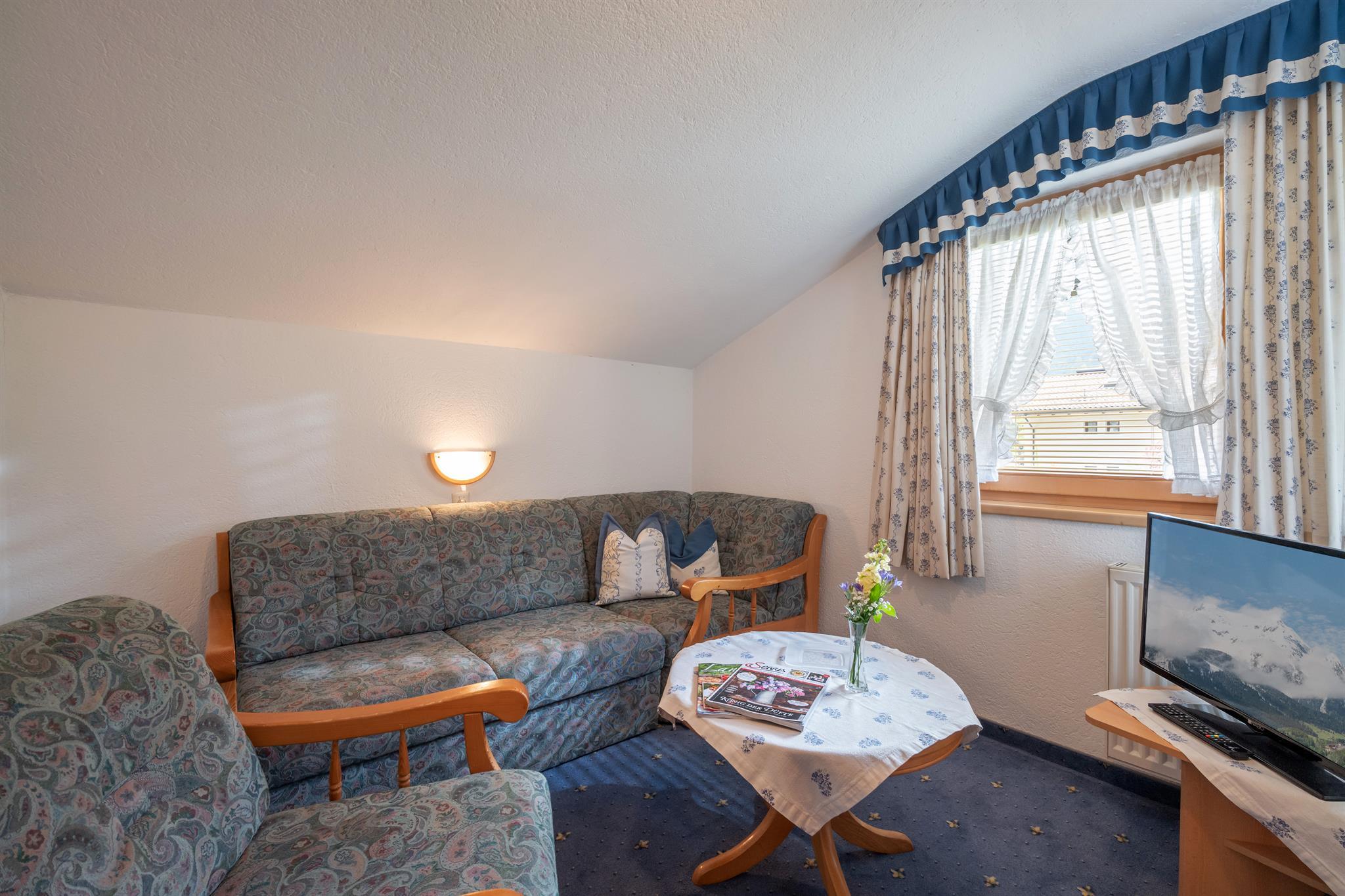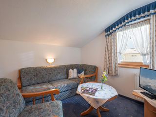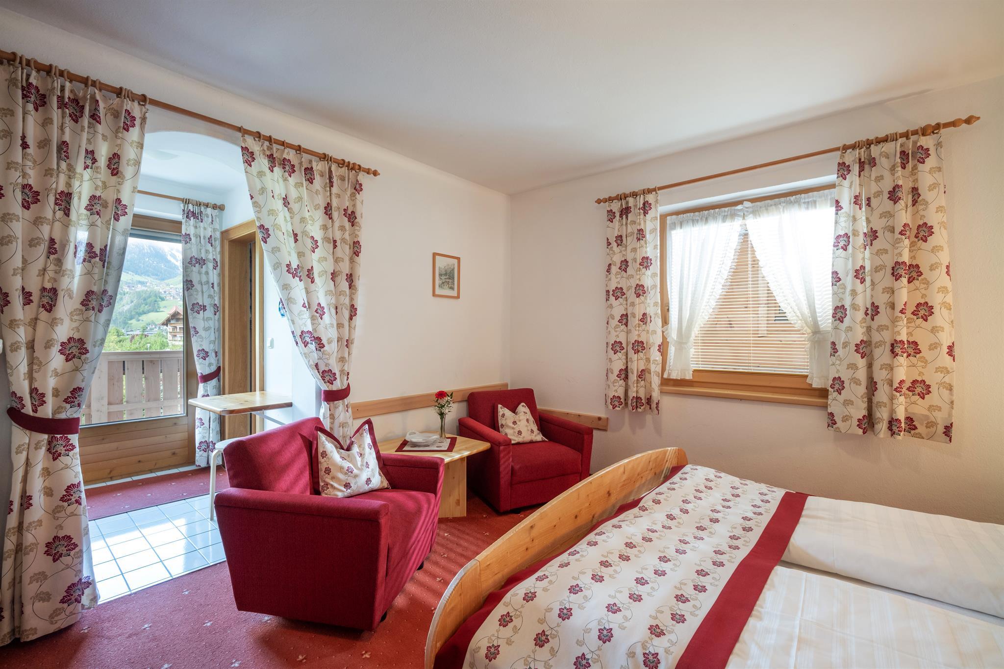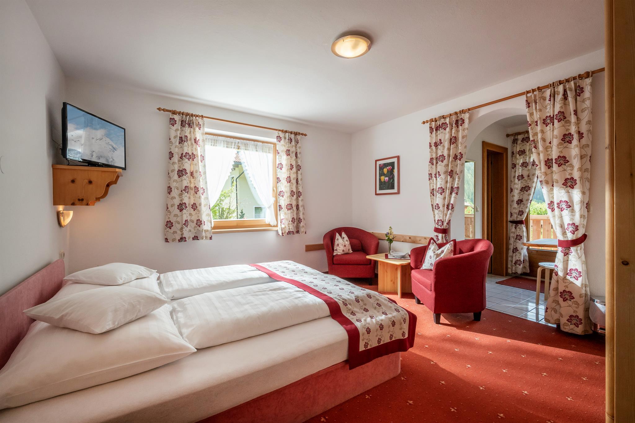cozy room with double bed and bedside table large wardrobe 2 couchchairs with a table to watch TV Balcony with a view of the Ahorn or Grünberg Shower with bathrobe, 2 towels, 2 shower towels, hairdryer WC separately Breakfast bufett on the ground floor