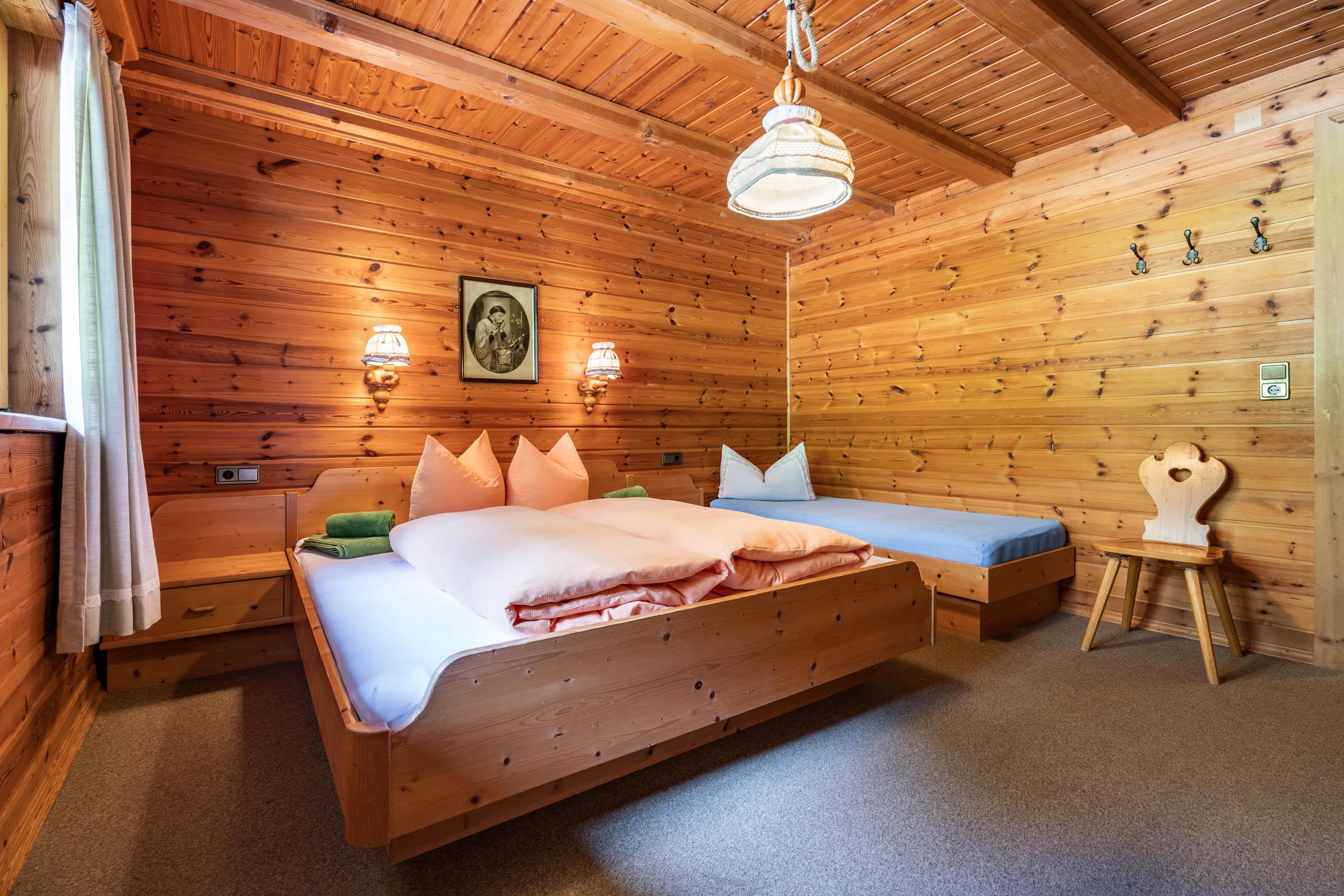 Particularly suitable for all cycling fans or transalp tour participants and mountain enthusiast groups from 8 people. In our old building are eight very simply furnished double rooms (approx. 15m²) with washbasin, 3 floor showers as well as 3 floor WC