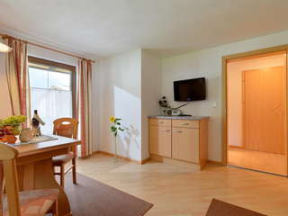 Flatlet Kolm: Kitchen-living room with dining area, radio, Sat TV, big bedroom with double bed and single bed, bath with You / WC round-running around balcony (east-north-west)