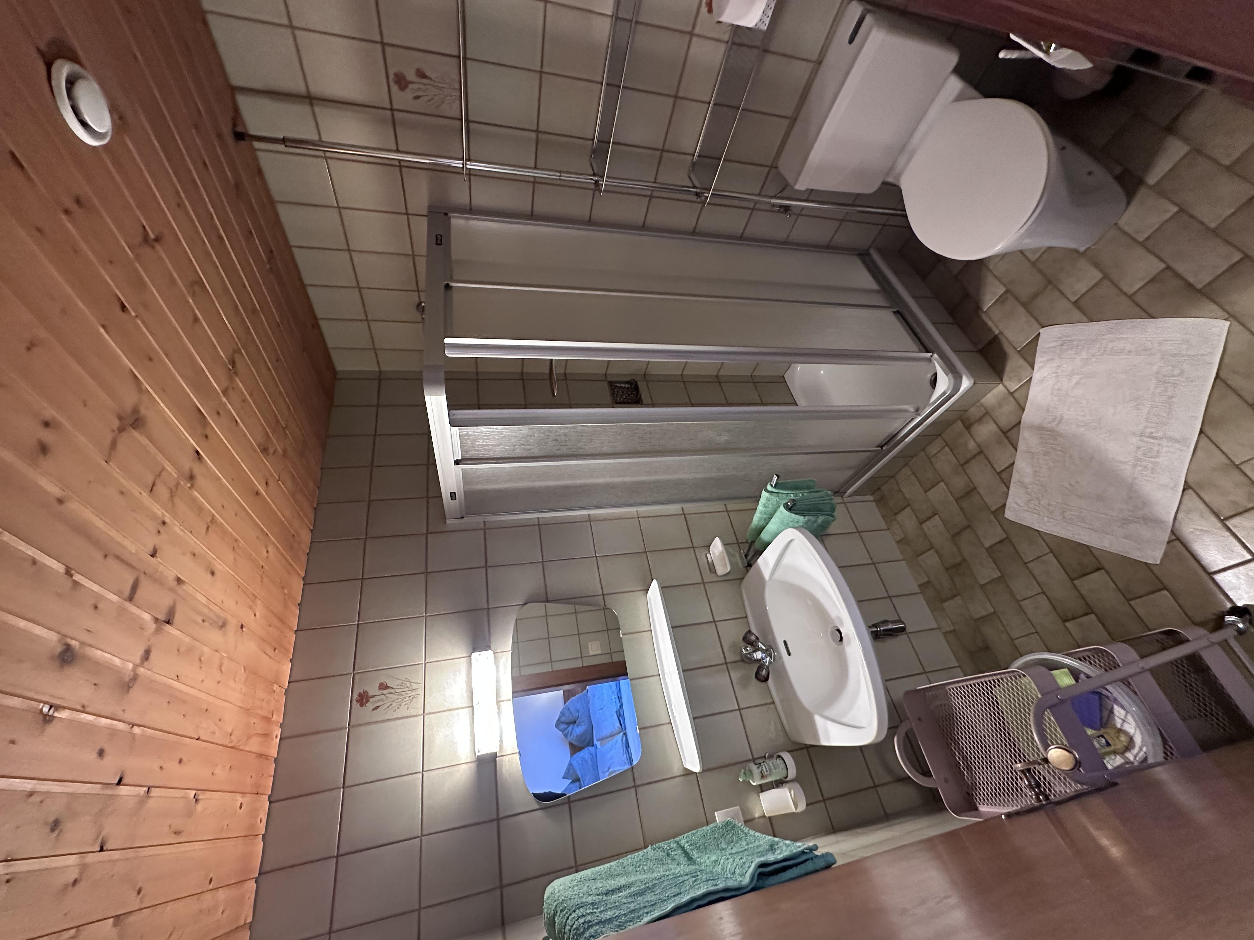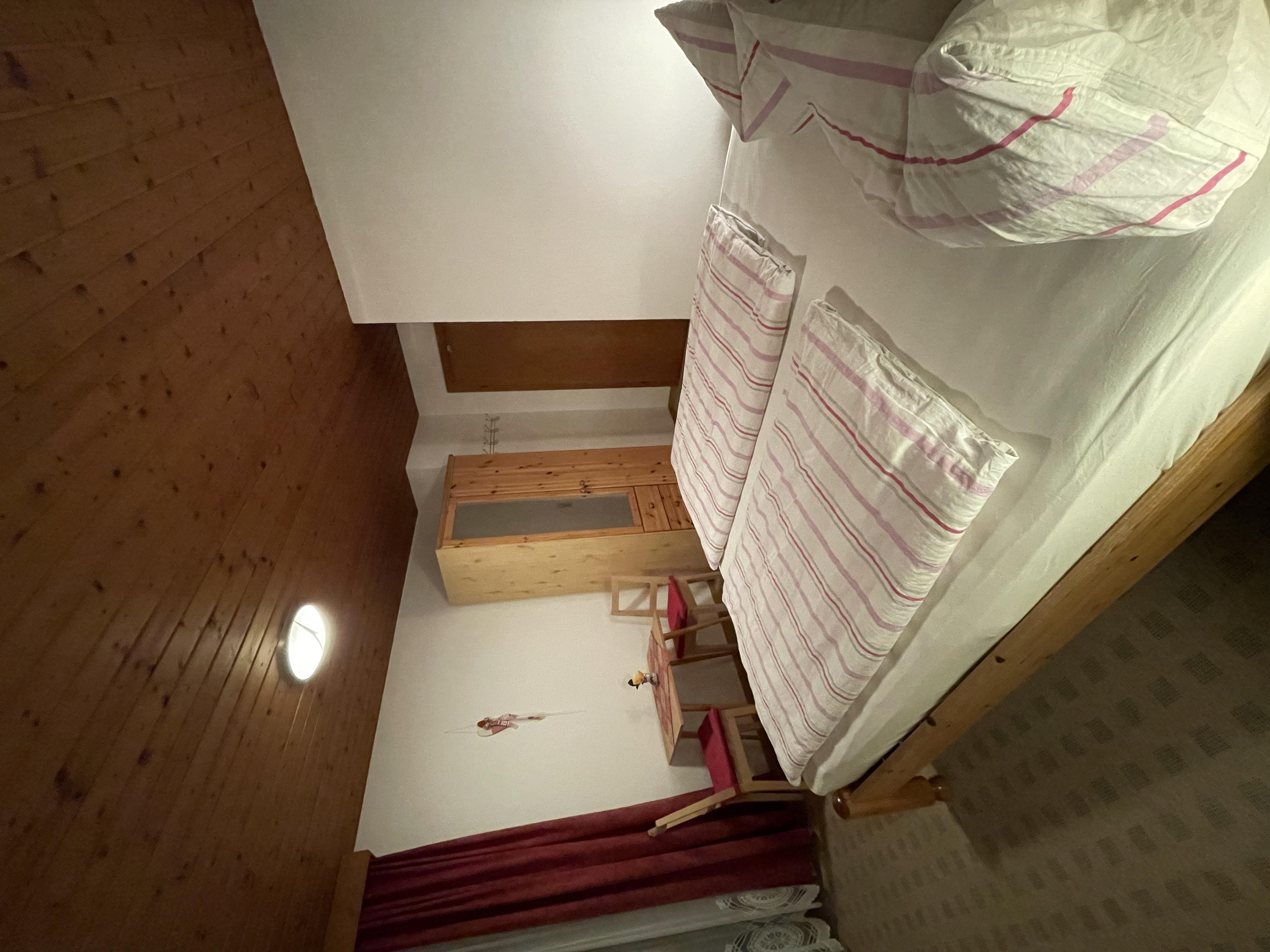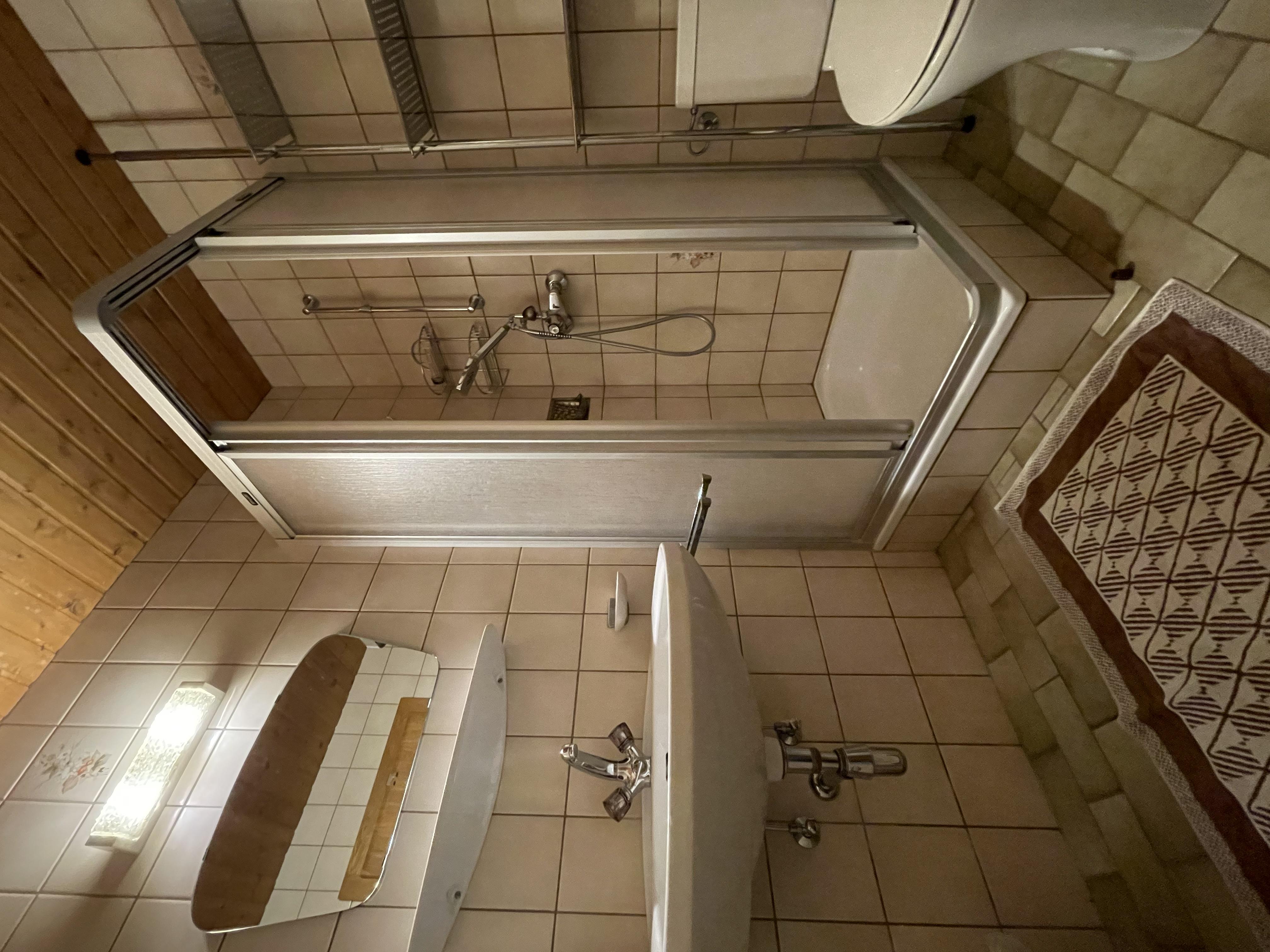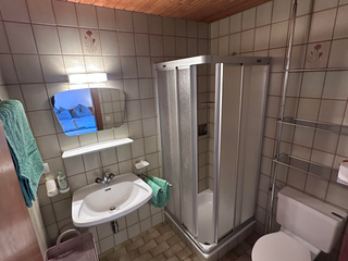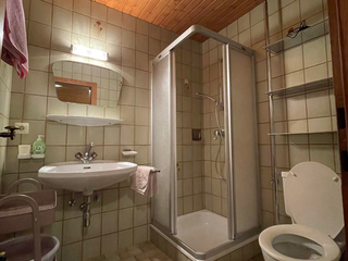 1st floor apartment, approx. 70 m² for 4 to 6 people Entrance hall with cloakroom, kitchen (stove, refrigerator, coffee maker, toaster, kettle and crockery) with dining area and built-in sun, 3 double bedrooms (1 with shower / WC), bathroom with shower,