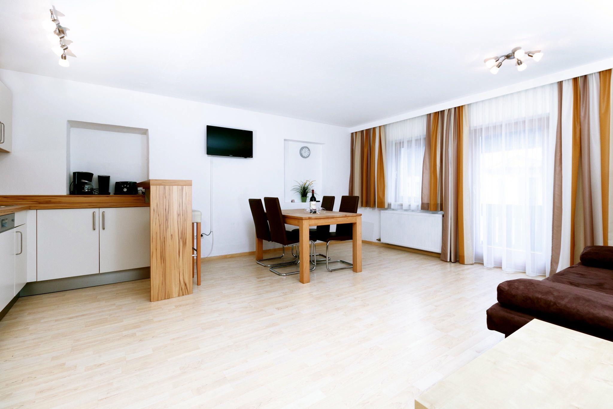 Centrally located, ca 70m to the Penkenbahn gondola. Newly renovated in 2024 the apartment features a generous living room area (east facing with a view over the "Becknfeld"), separate kitchen with dishwasher, microwave, stove, fridge/freezer and a double