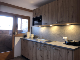 This Apartment consists of a double bedroom with a couch (sleeping couch for one Person), a living kitchen, bath, WC, TV and balcony. The two Apartments of this type are located on first and second floor. The kitchen is equipped with microwave, electric