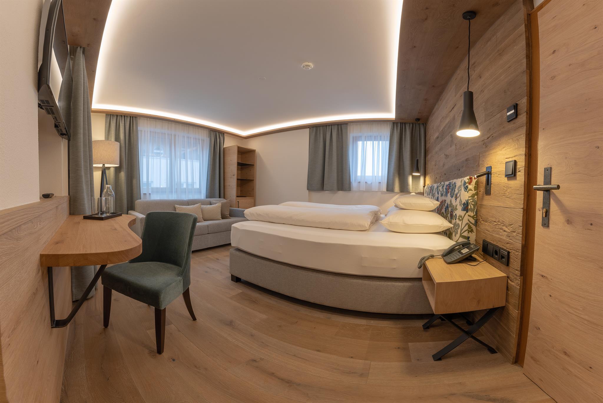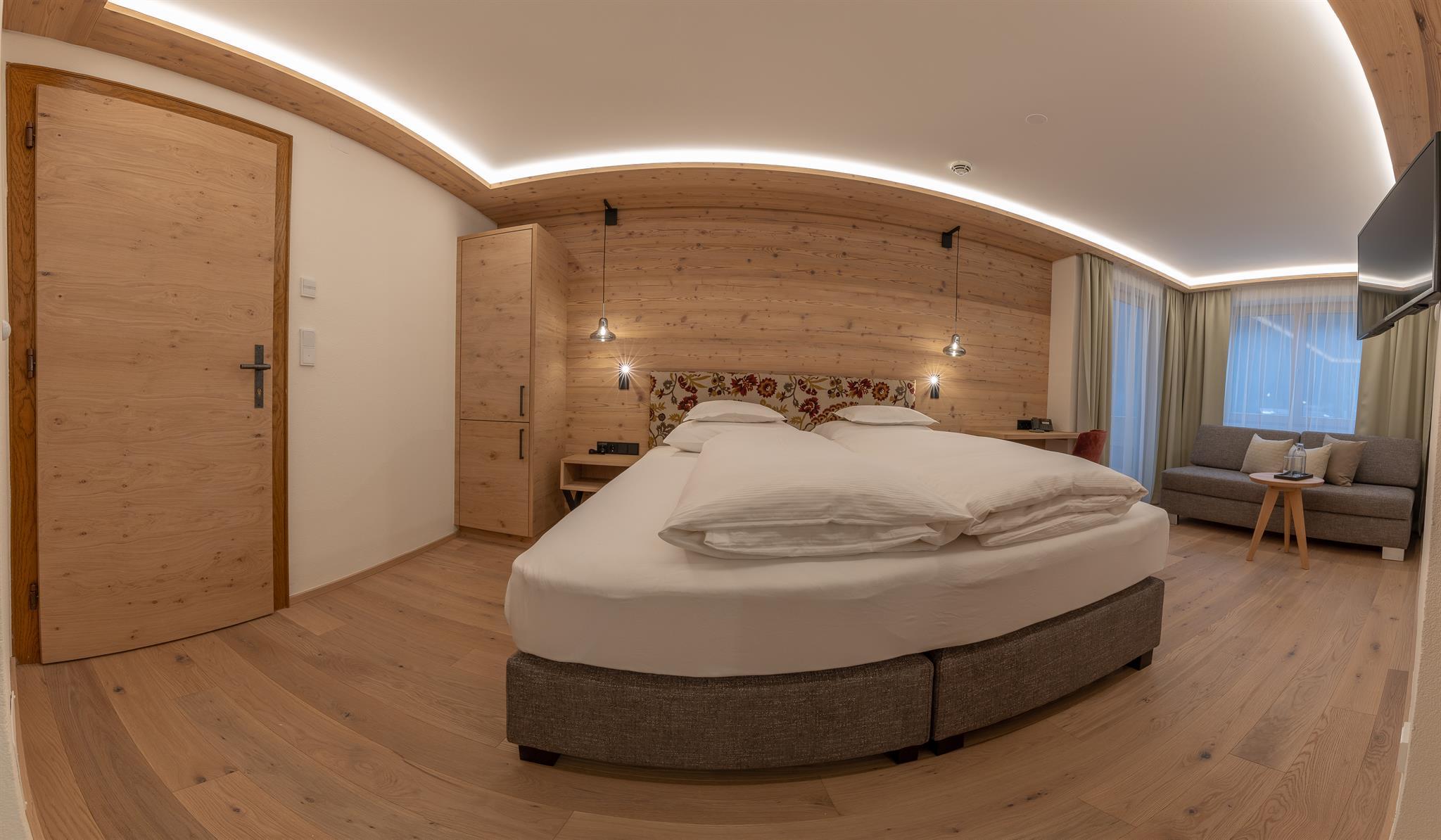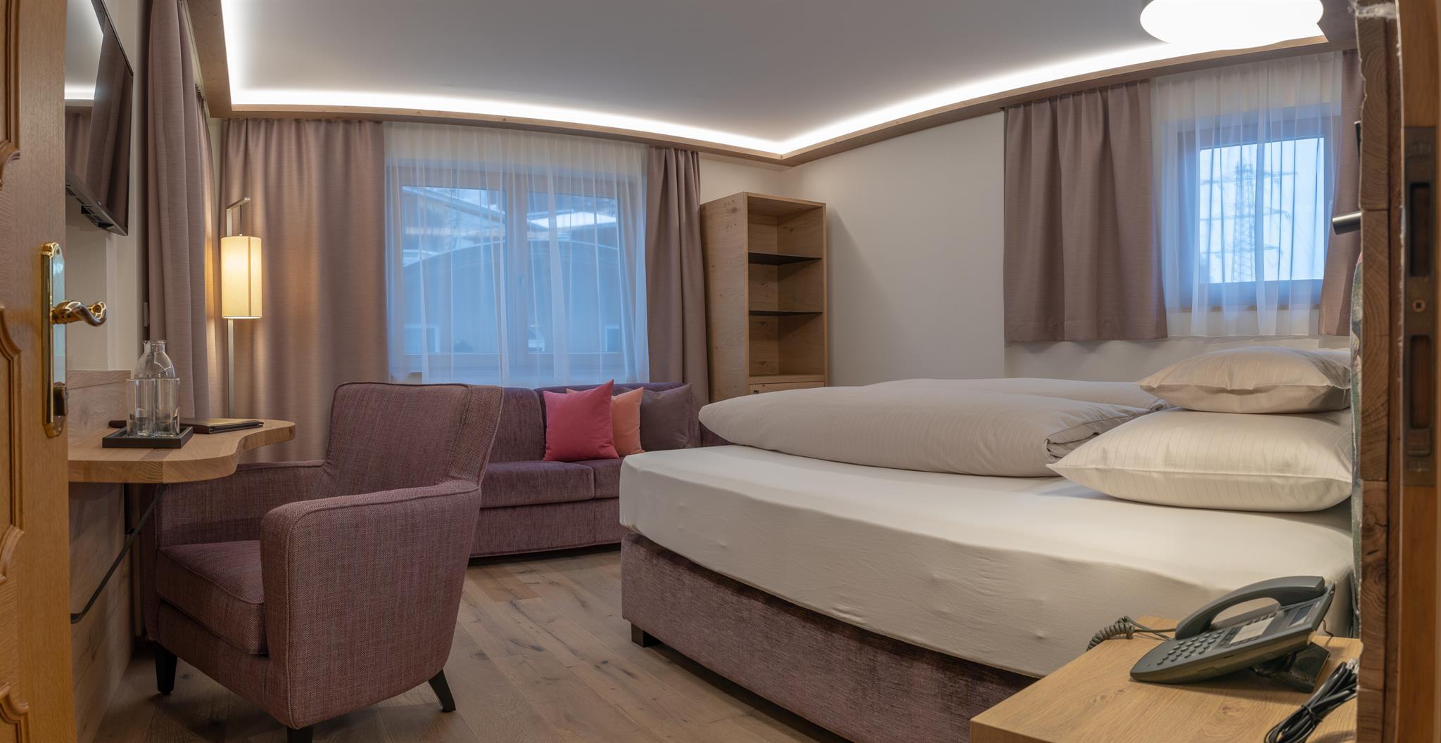 30m² large double room with living area, bath/WC, balcony, hair dryer, safe, telephone, internet connection, cable TV with panorama pictures.