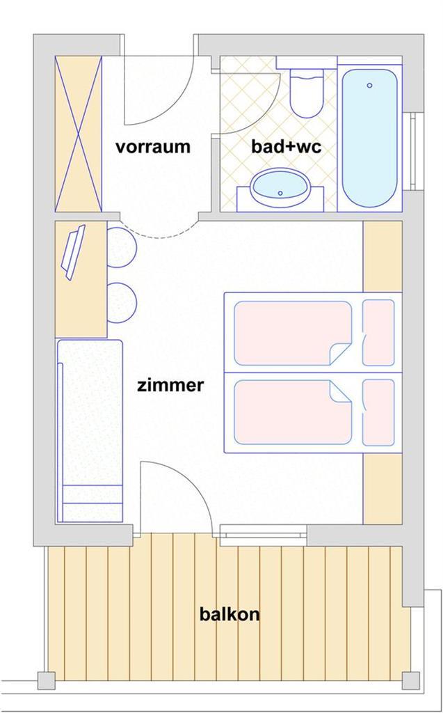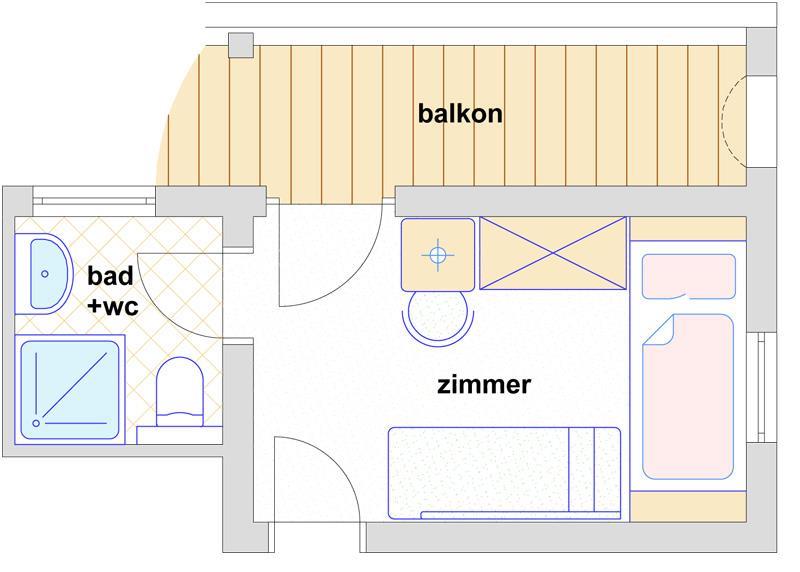 1 sleeping room, 1 living room with tiled stove, separate balcony, bath, WC, hairdryer, SAT-TV, radio, telephone with internet-connection, safe, little kitchen.
