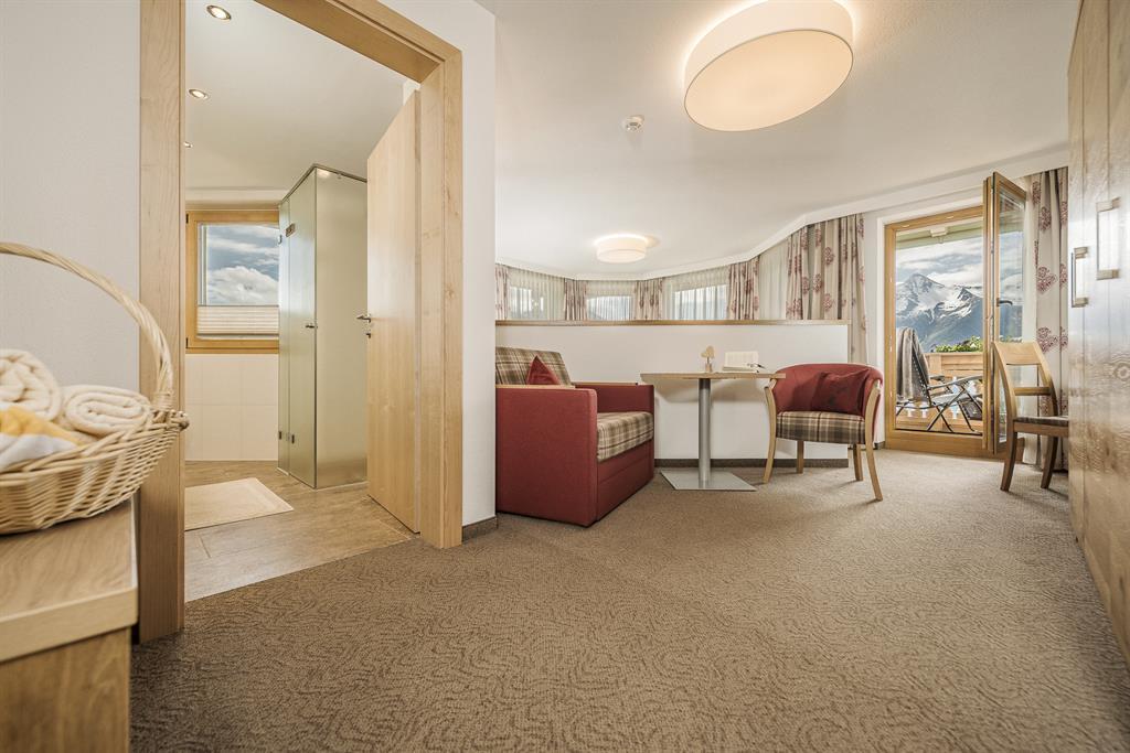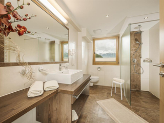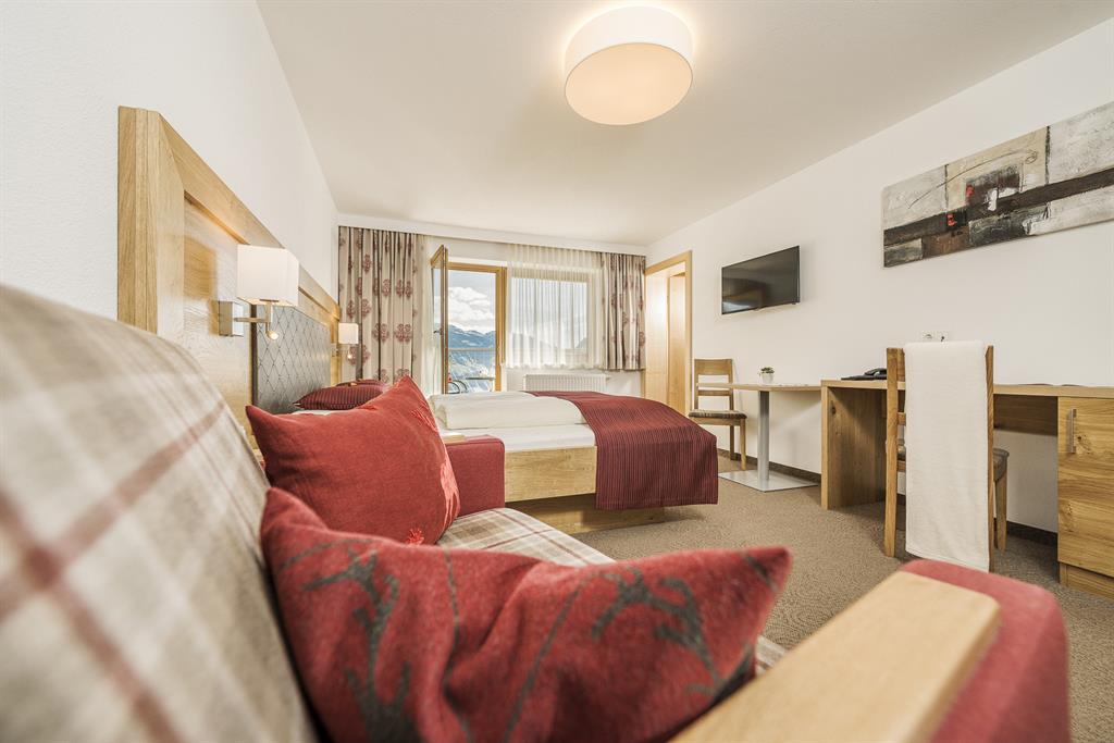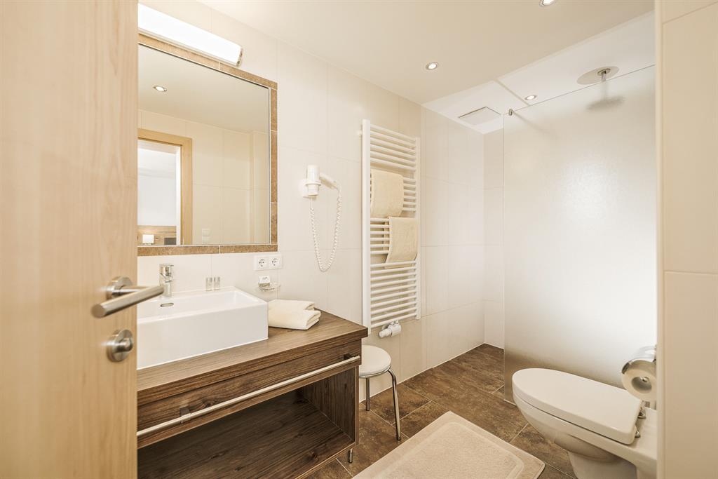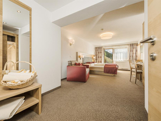 Our new furnished deluxe-room is very bright and harmonious. At the balcony you have a beautiful view oft the mountains. With shower/WC, hairdryer, flat TV radio, telephone and safe. Free wifi is available.
