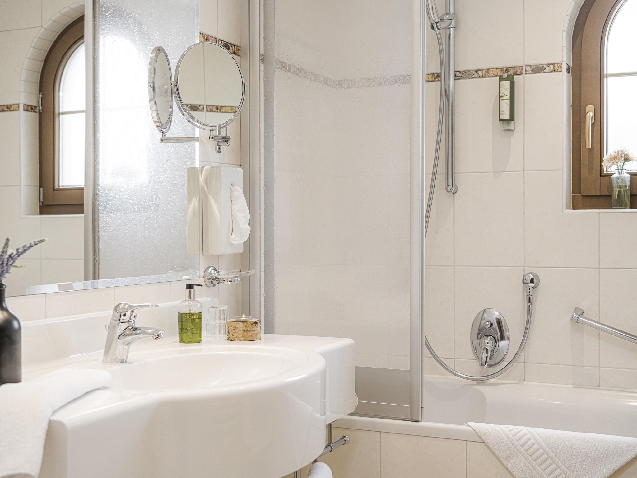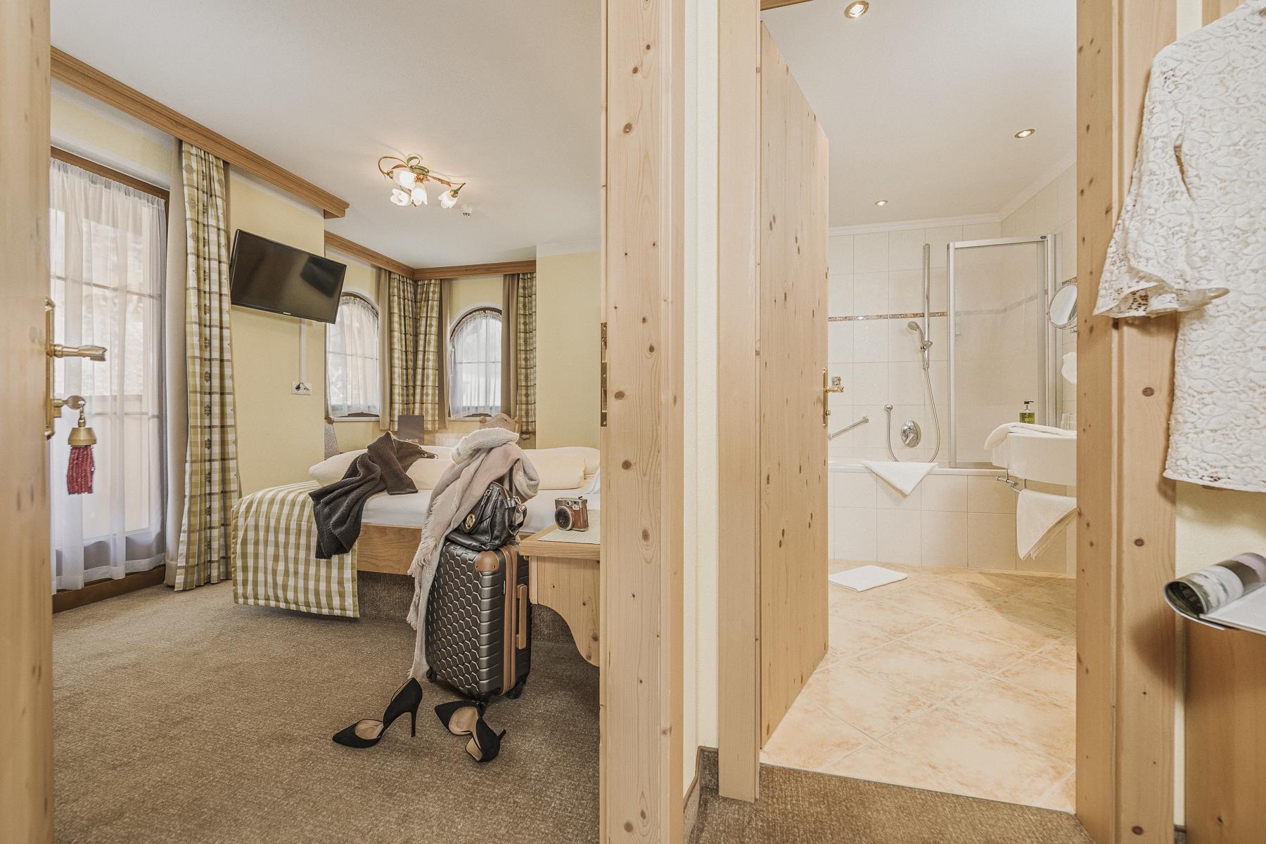 Our well-feel-beeing-rooms Alpenrose ar very comfortably doublerooms, ca. 27m² big, balcony, sitting corner, desk, bath or shower/WC, hair-dryer, Sat-TV, telephone, radio and save, ( this room type has different shapes and furniture equipment )