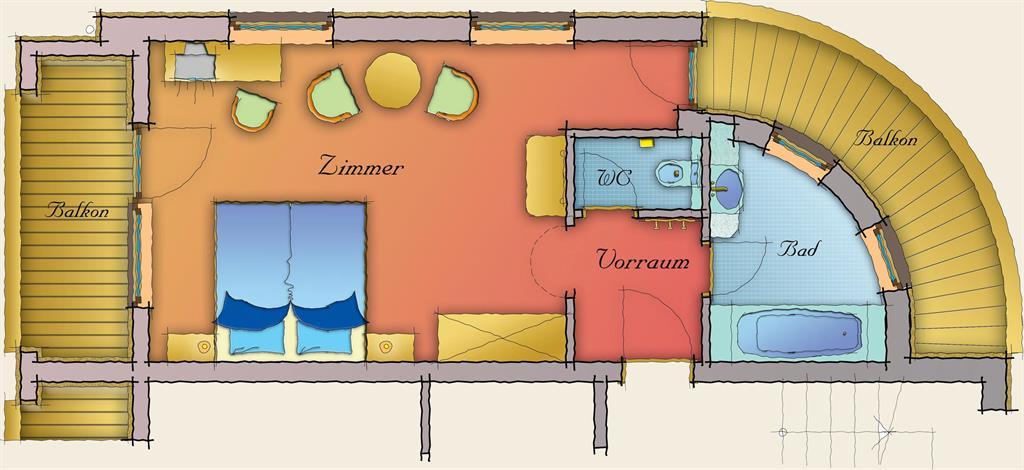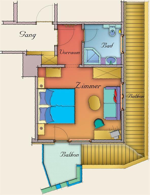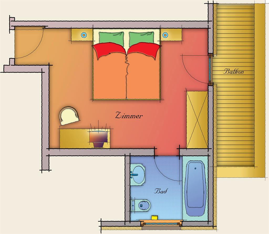 Double room with balcony allow you to better enjoy our house's beautiful setting. Nice balcony enables you to enjoy our beautiful surroundings. May also be occupied as a single. Ca. 20 m²