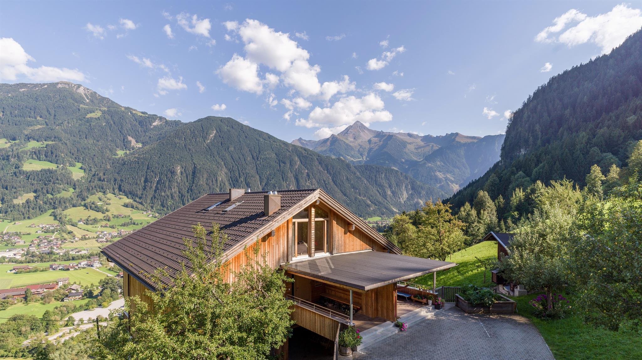 Drive along the main Zillertal road, the B169, until 2km after Hippach, then turn right and drive straight on until the lift station of the Horbergbahn. From there 1km up the mountain, until the road forks at a small industrial building and a chapel. Drive left to our farm.