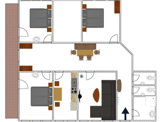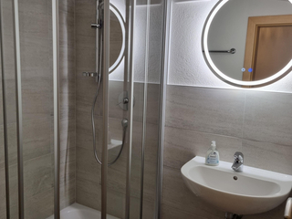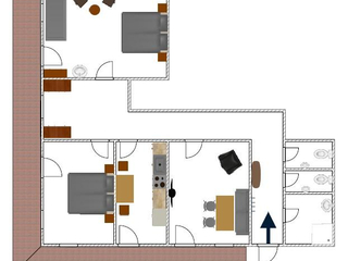90 m² apartment on the 1st floor with balcony well equipped with: -2 bedrooms (1 double and 1 triple) - bed linen, blankets, pillows -fully equipped kitchen (fridge with freezer compartment, coffee machine - Nespresso and filter, kettle, toaster, oven,