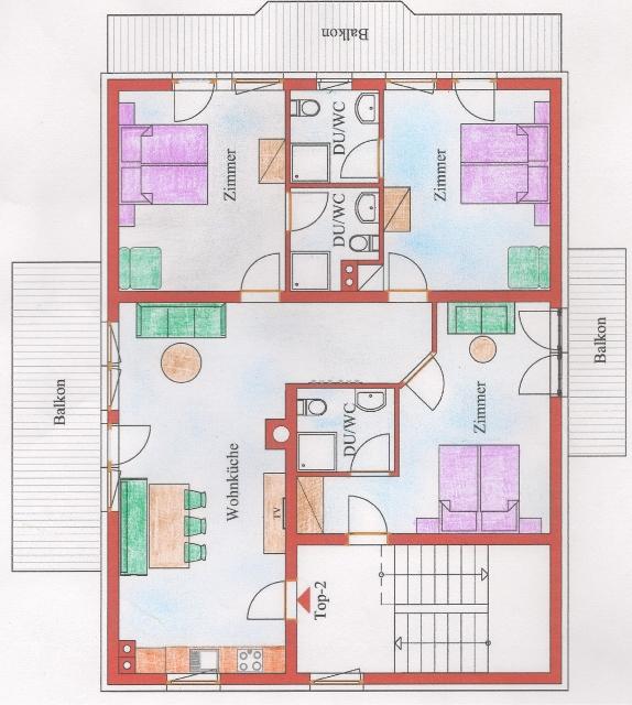 Apartment for 4 - 9 persons with 104 sq m: - big living room with completely equipped kitchen, dining area and couch - The kitchen is fitted with a ceramic glass hob, microwave with grill, a fridge with freezer, a dishwasher, toaster, coffee machine and