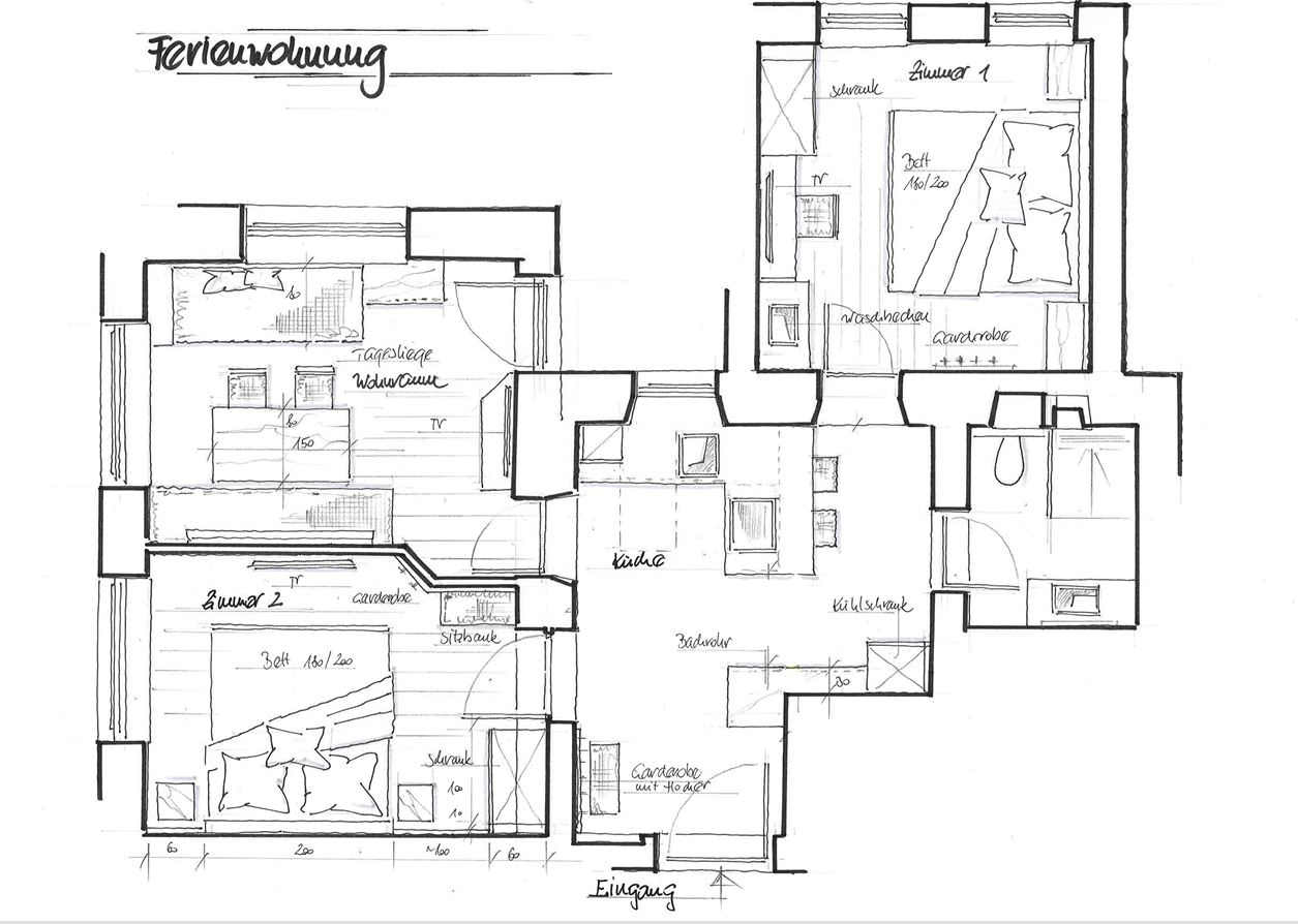 NEWly renovated holiday apartment with 55m² in modern style for 2 to 4 people: 1 double room (box spring bed) 1 double room (box spring bed) and washbasin 1 bathroom with shower/WC cozy large living kitchen with seating area and sofa fully equipped
