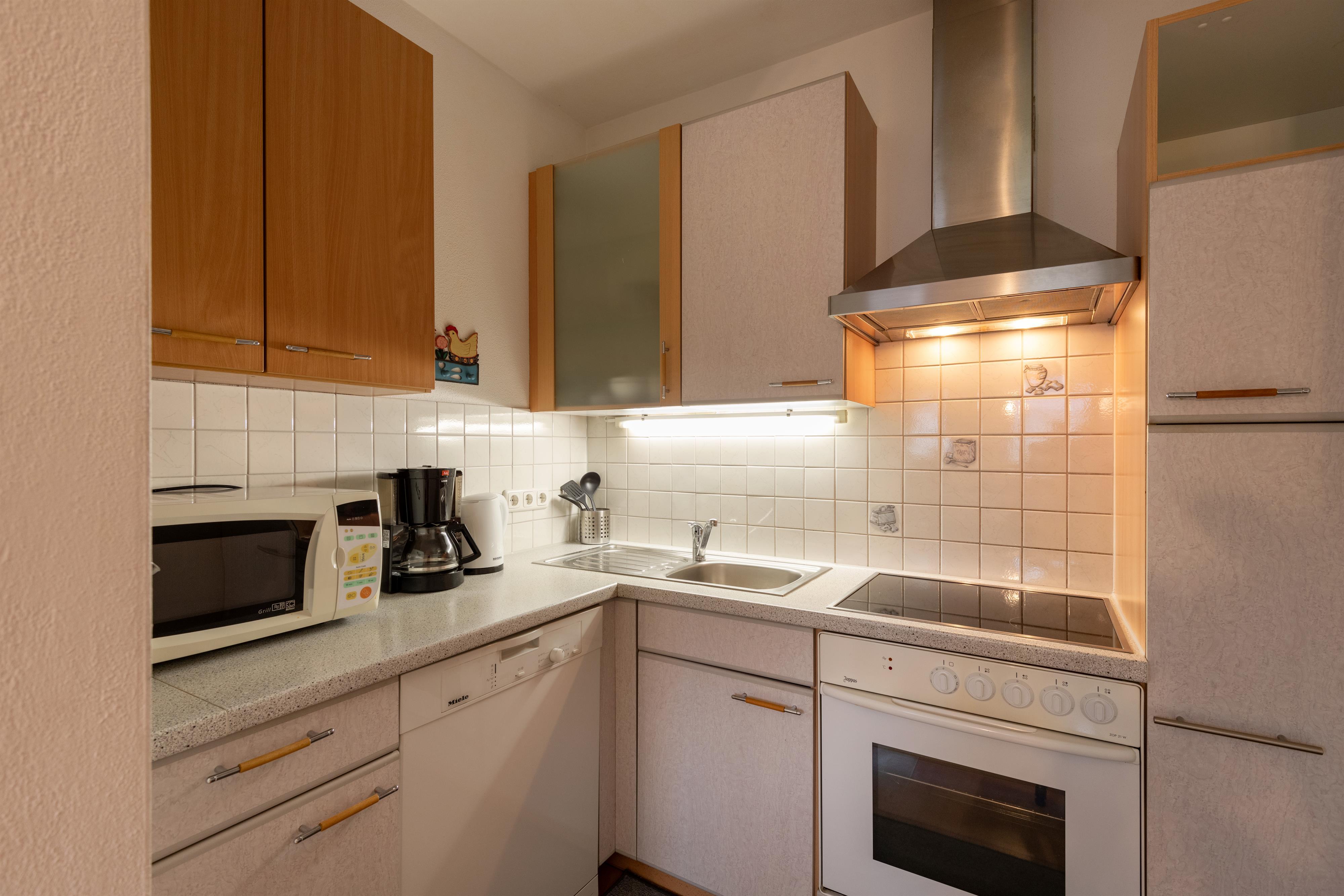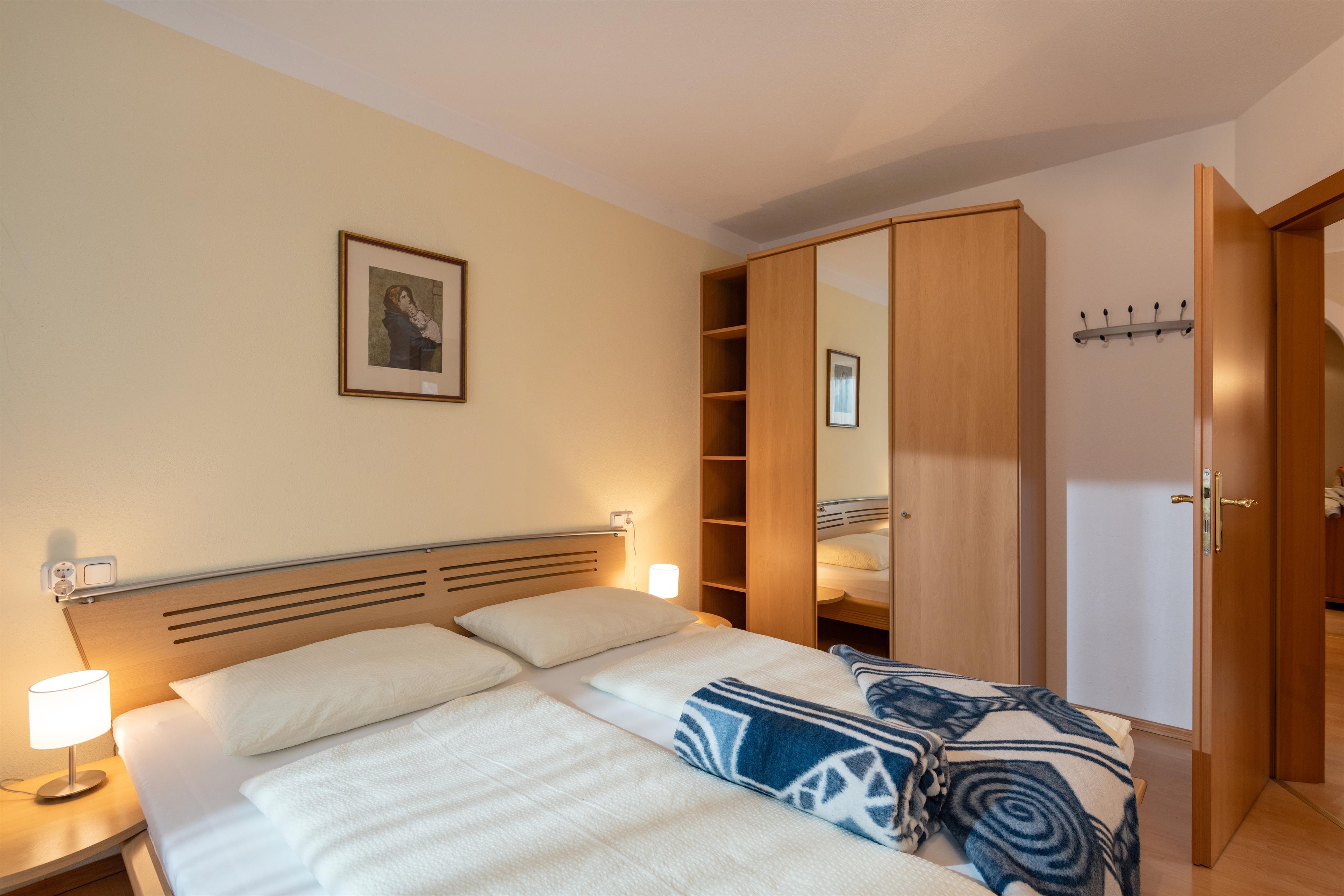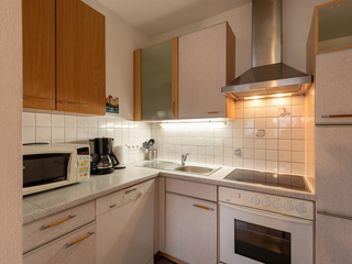 30m² large holiday apartment suitable for 2-4 persons, small kitchen equipped with a dish washer, lounge with double sofa bed, Sat-TV, 1 double room, shower/WC, ground floor, south east facing terrace.
