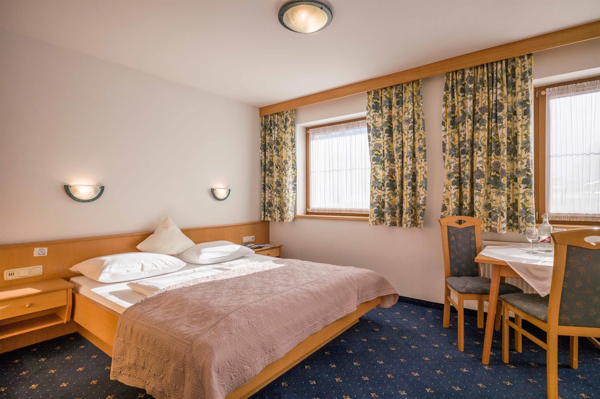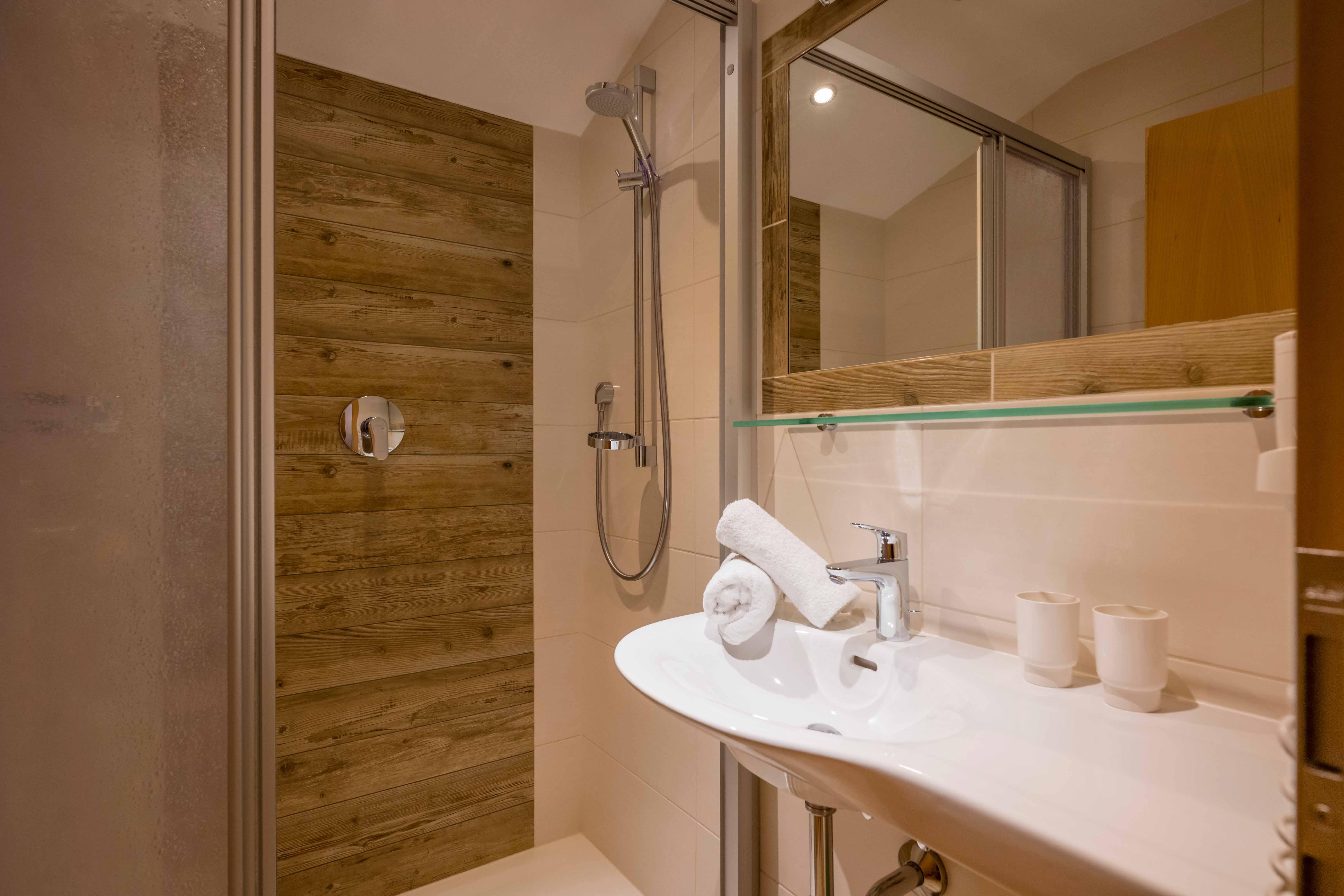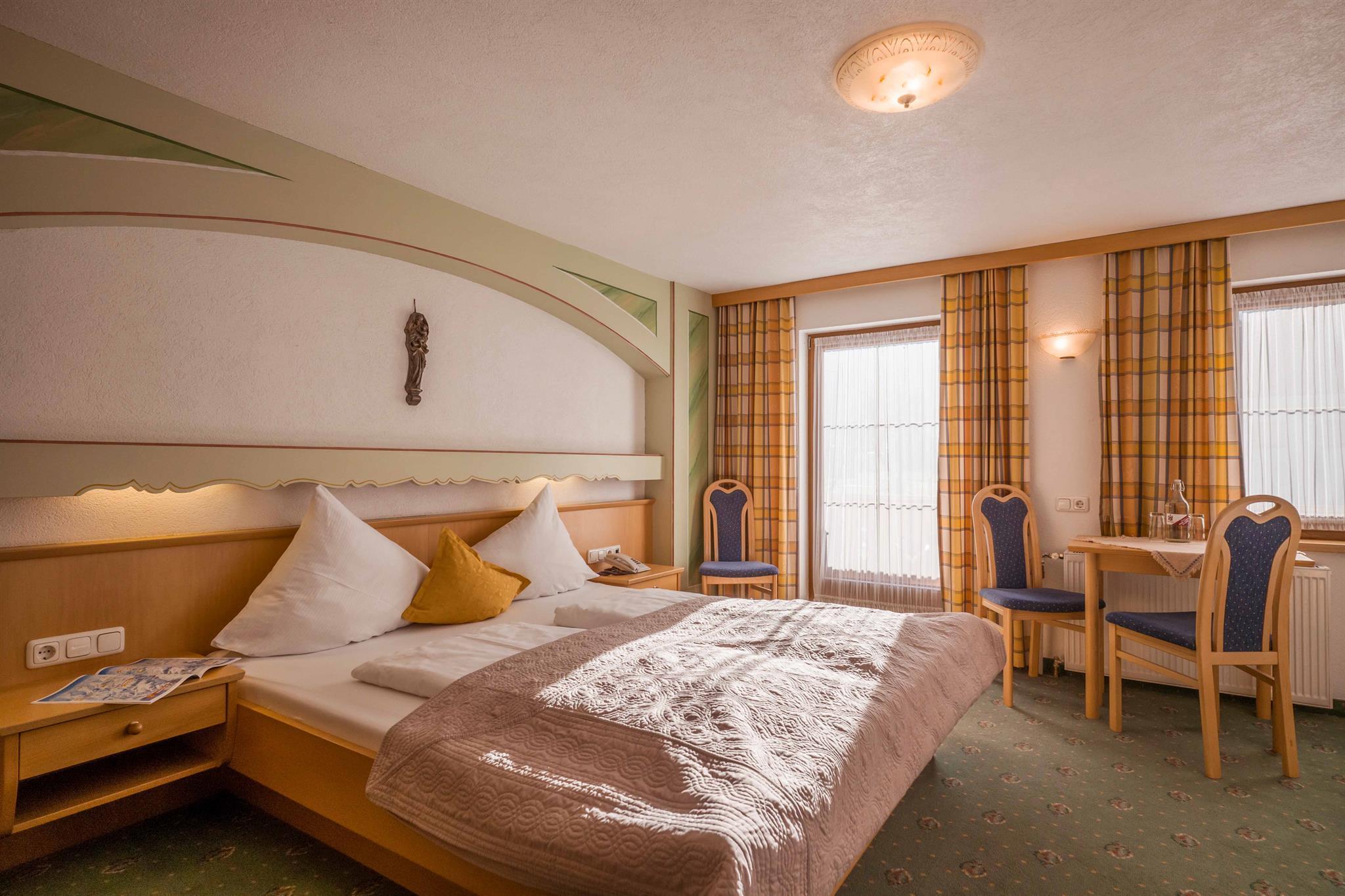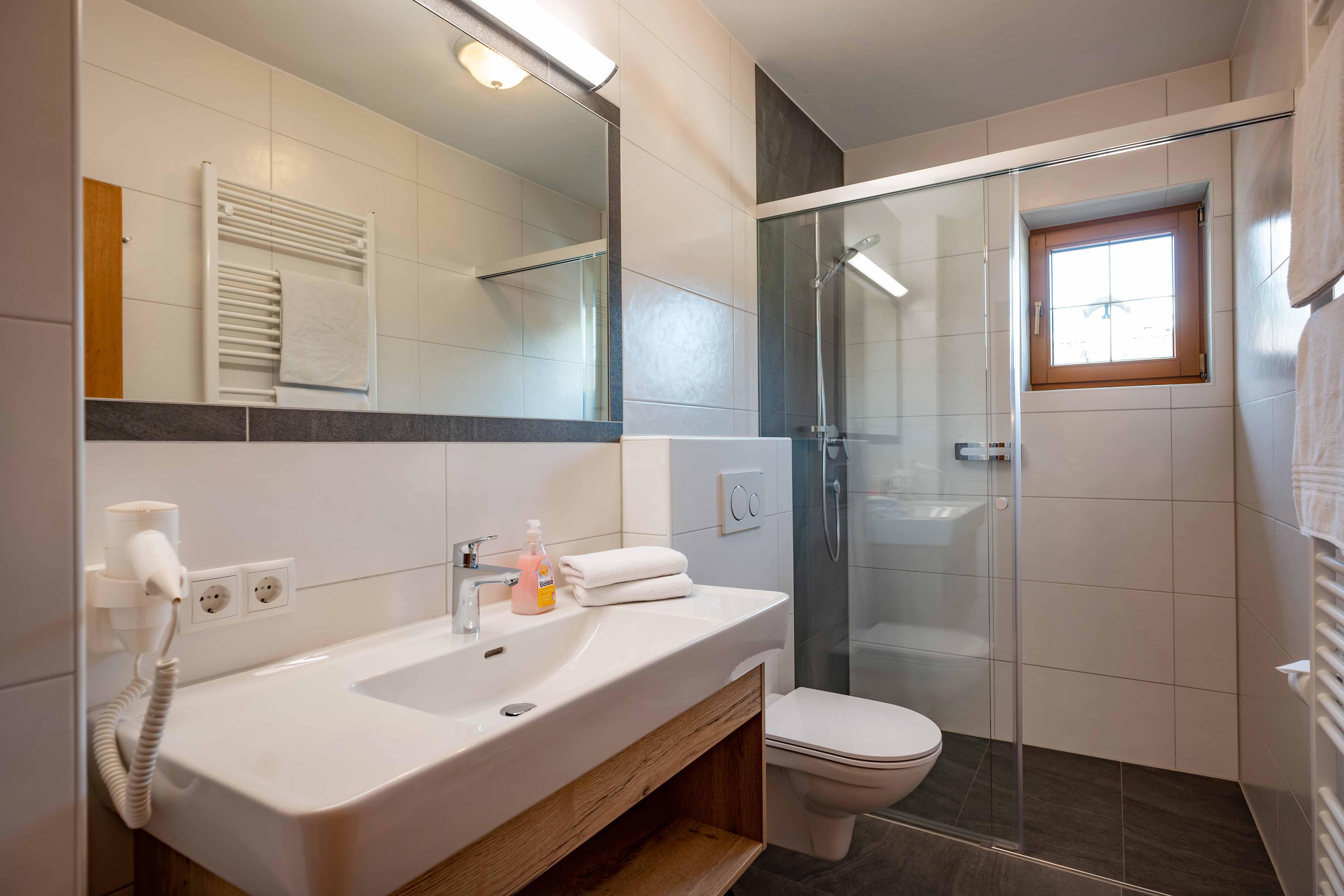 Experience alpine coziness in our traditionally modern double room: With comfortable seating, a minibar, and satellite TV, it offers you the perfect retreat for relaxation. The comfortable bathroom with shower/WC and the cozy west balcony invite you to