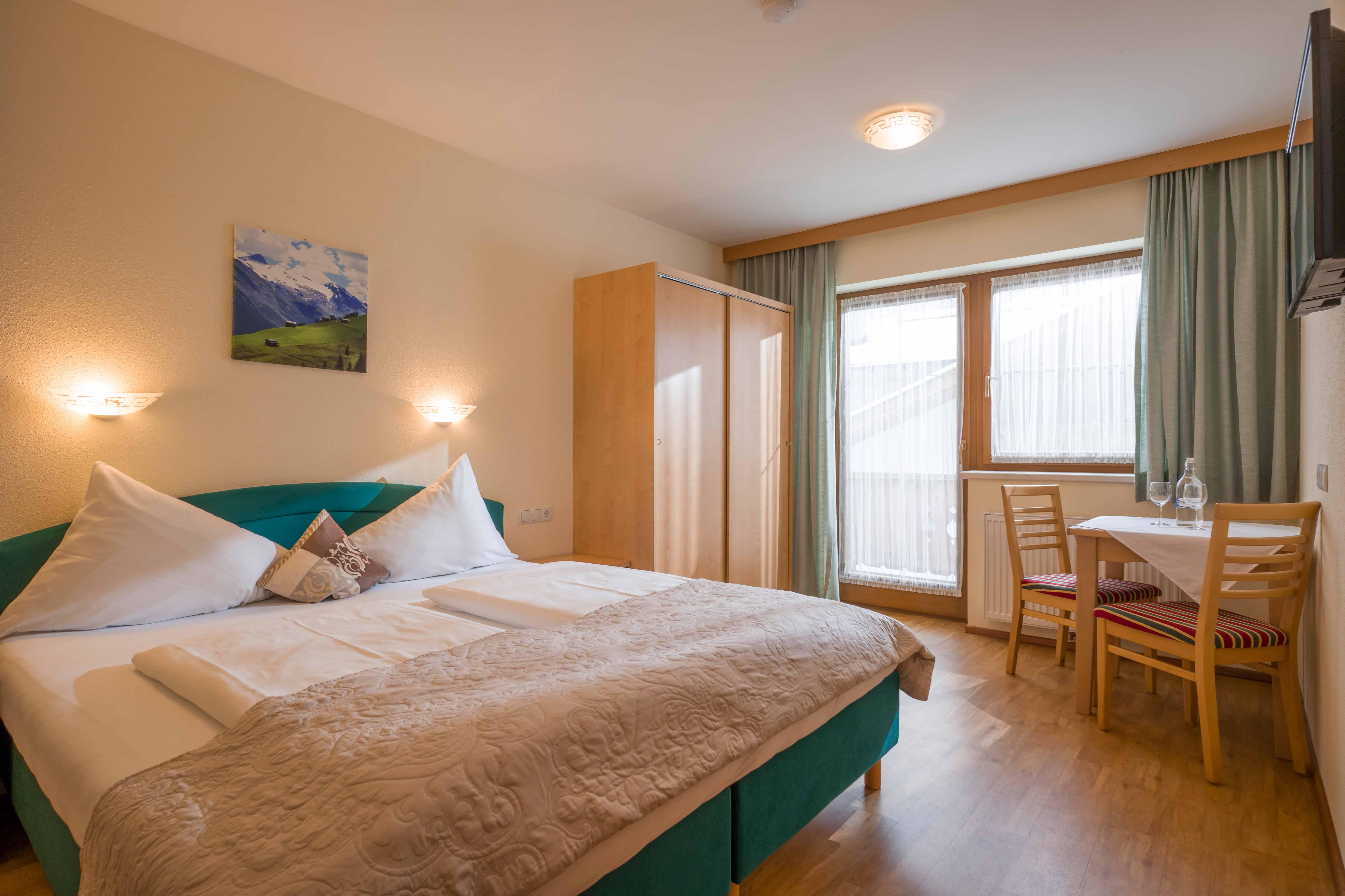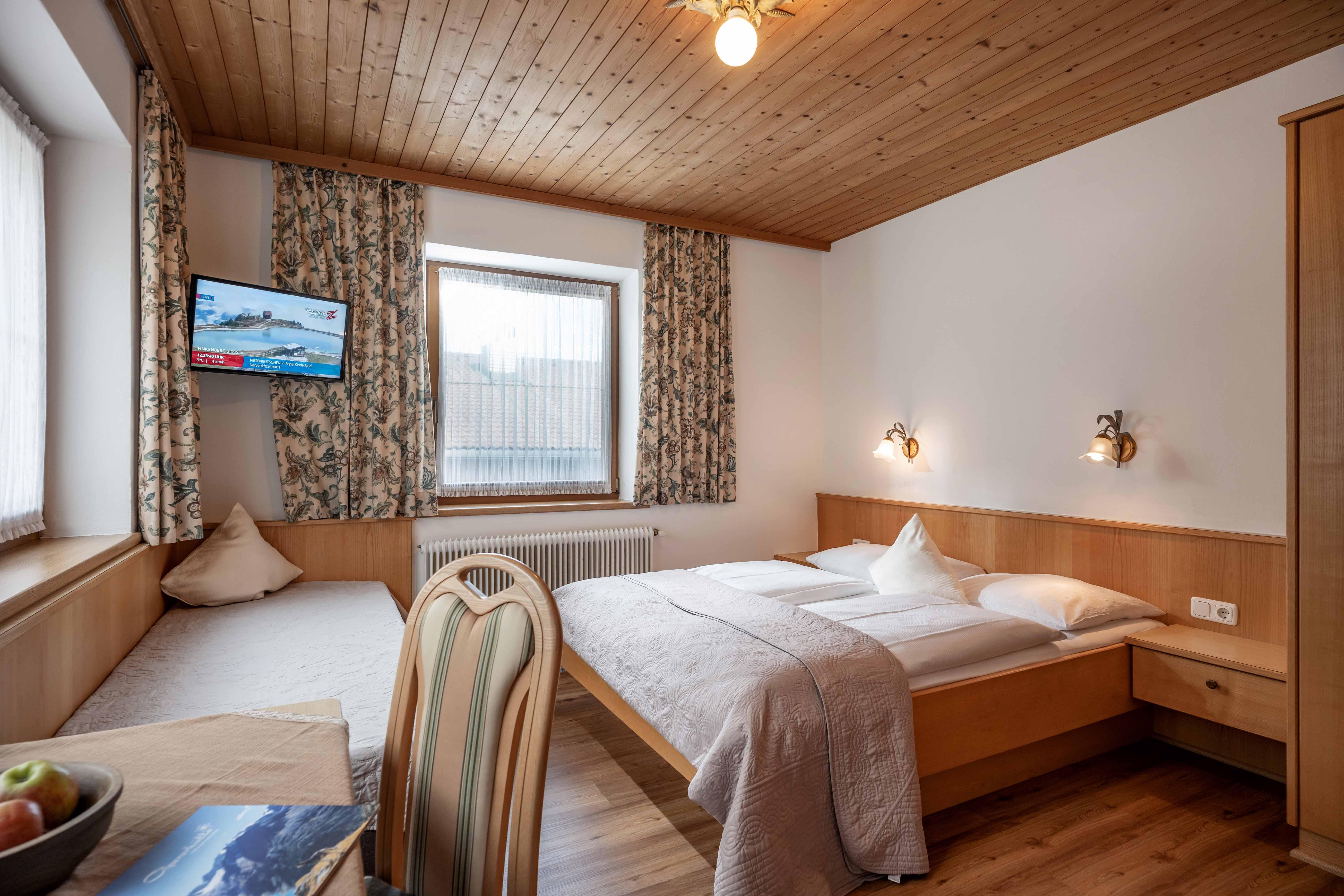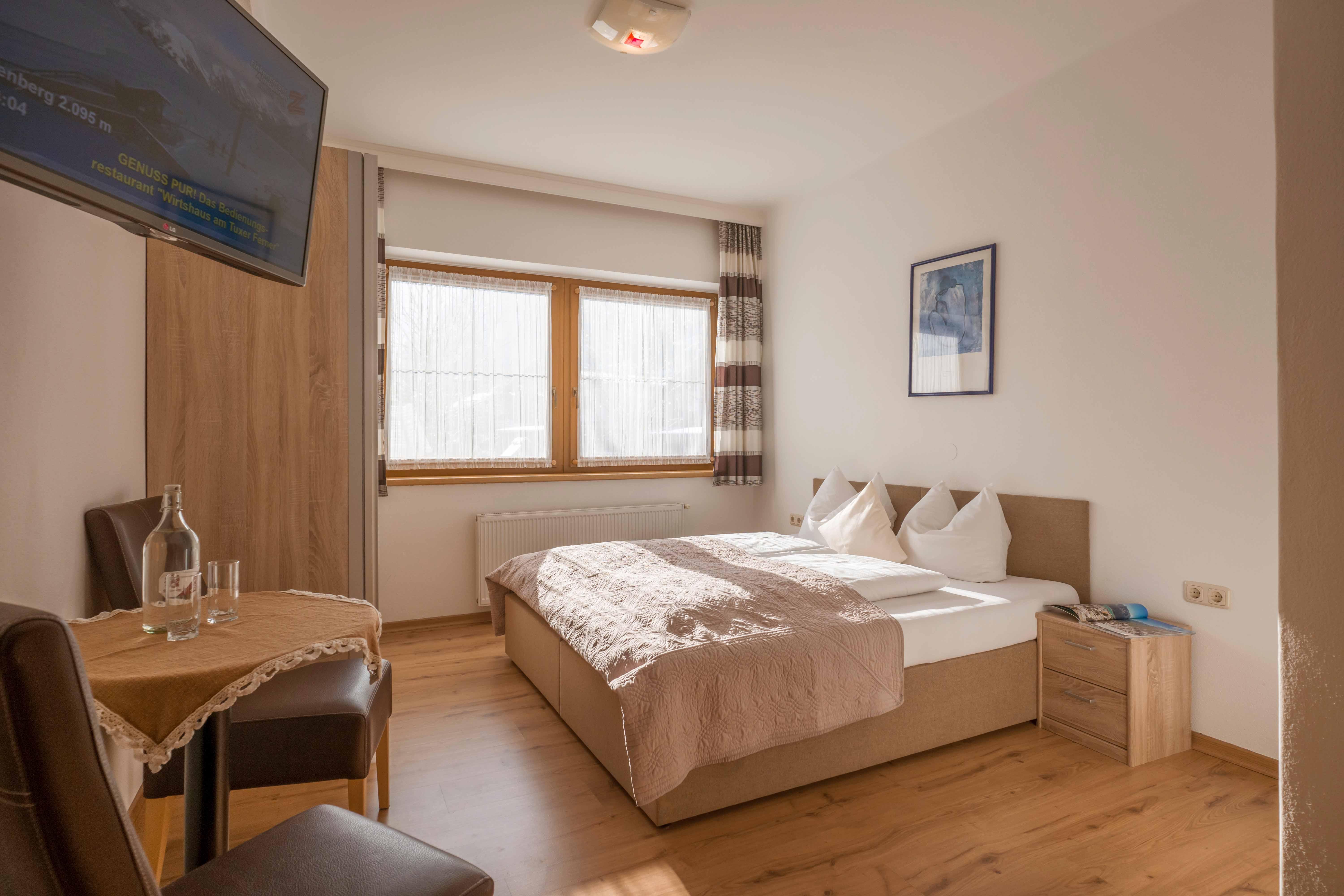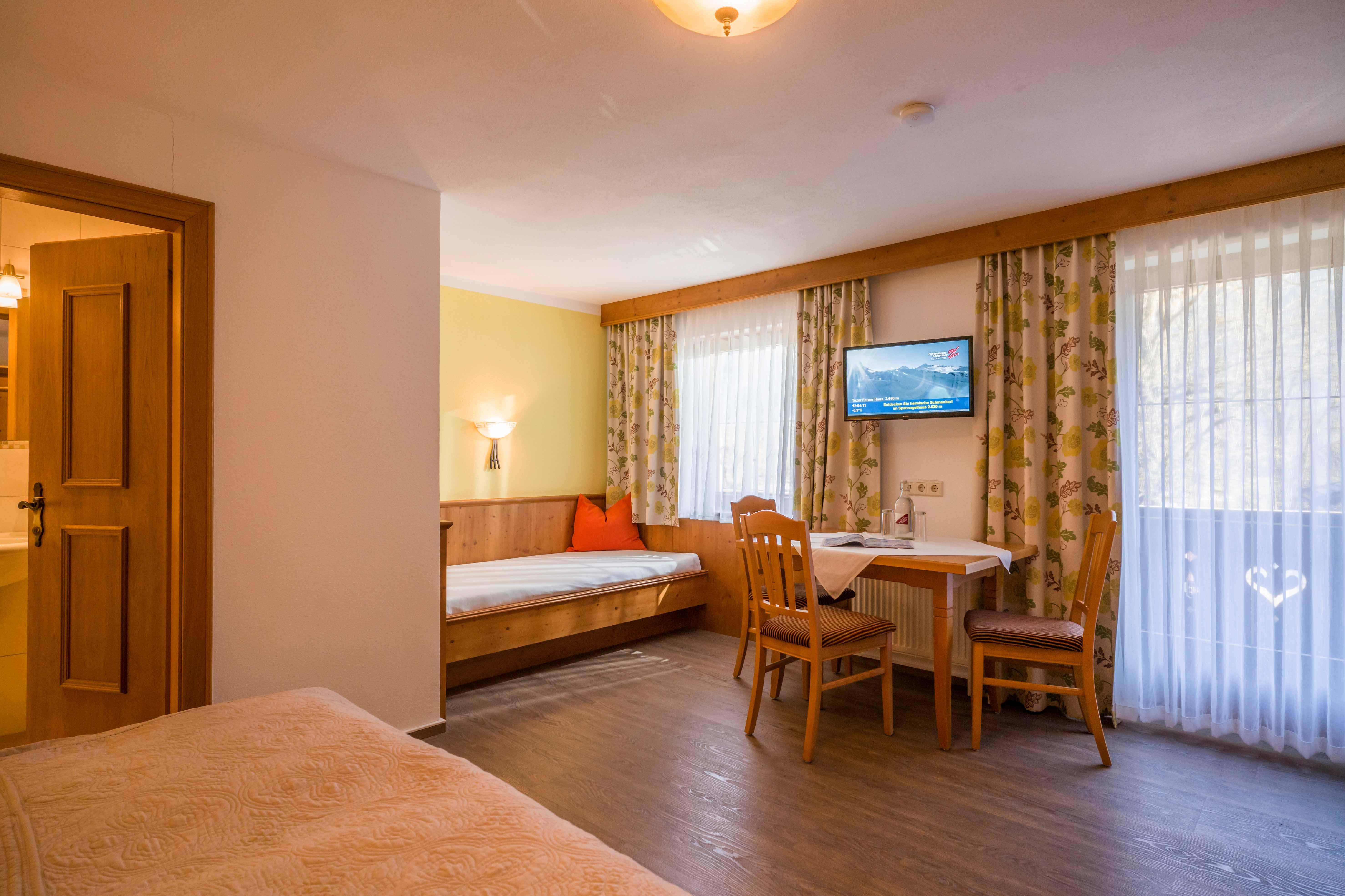Experience alpine coziness in our traditionally modern double room: With comfortable seating, a minibar, and satellite TV, it offers you the perfect retreat for relaxation. The comfortable bathroom with shower/WC and the cozy west balcony invite you to