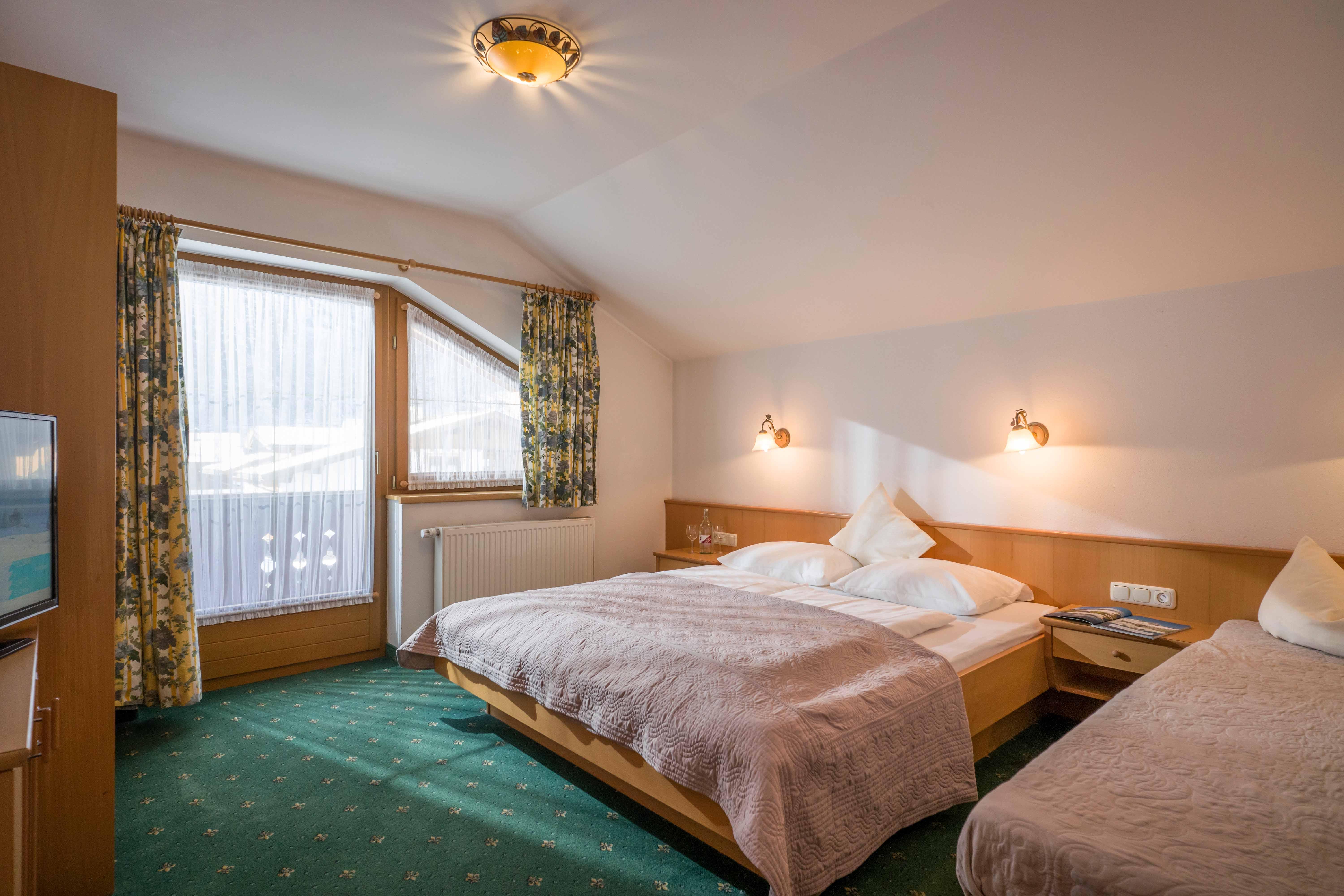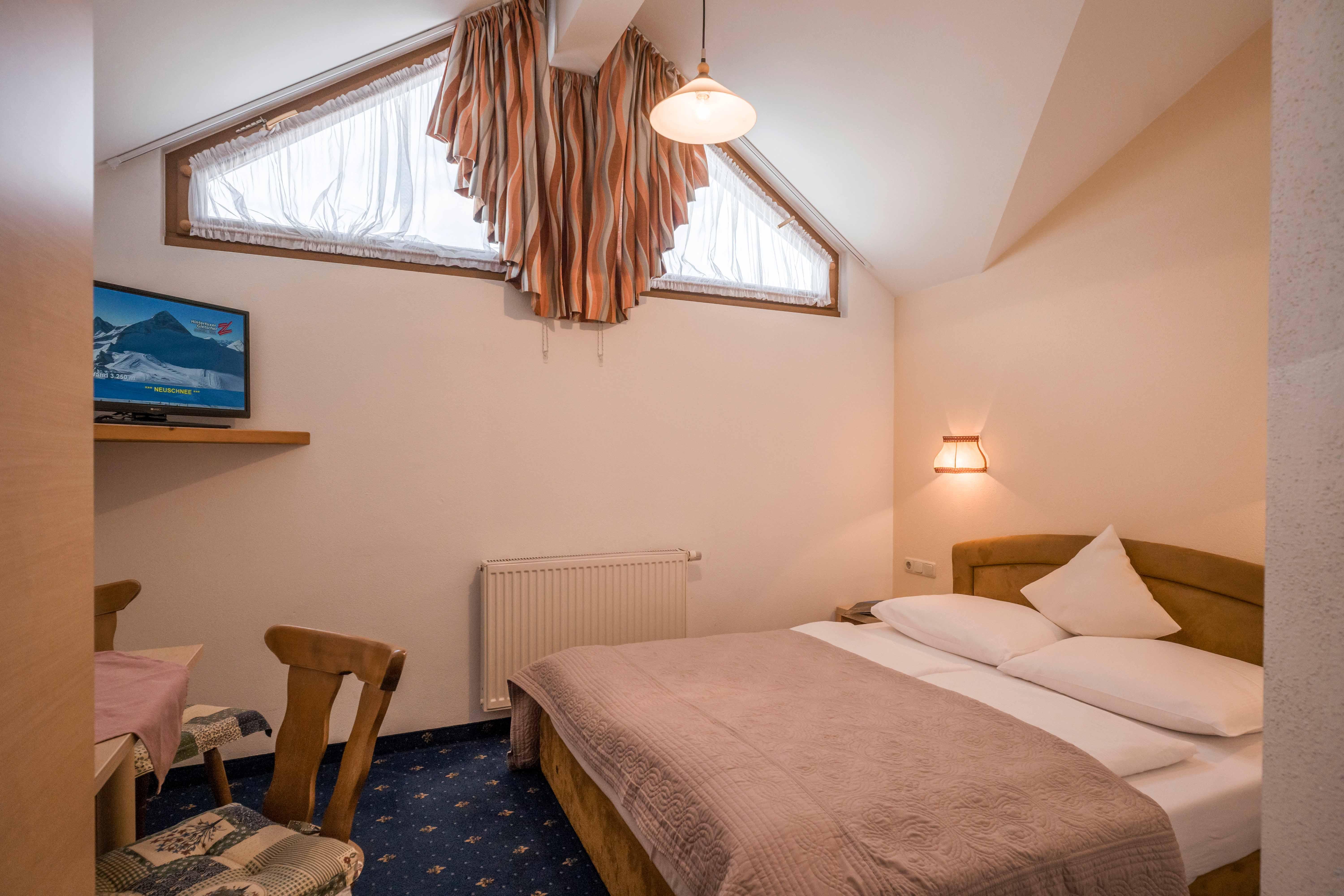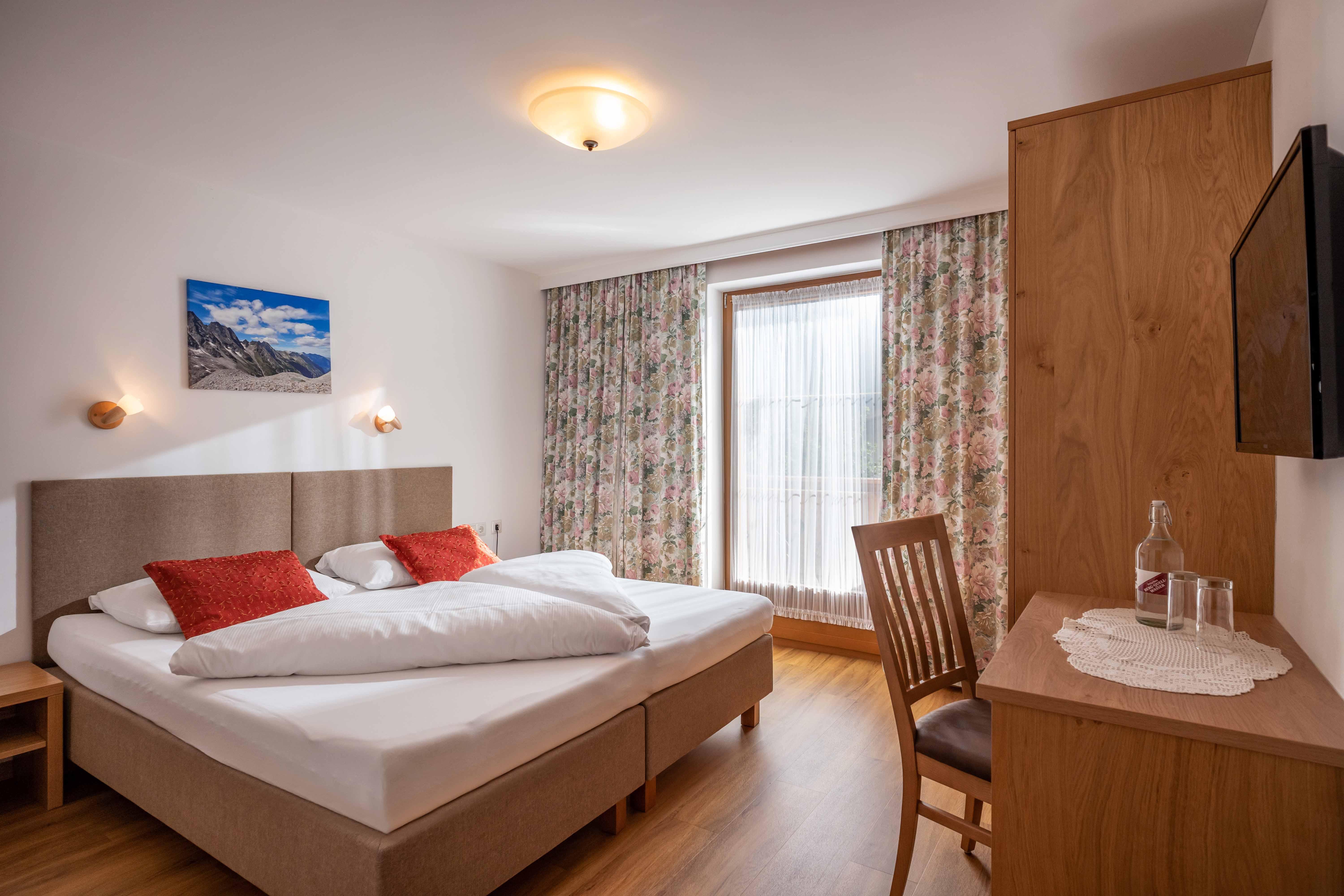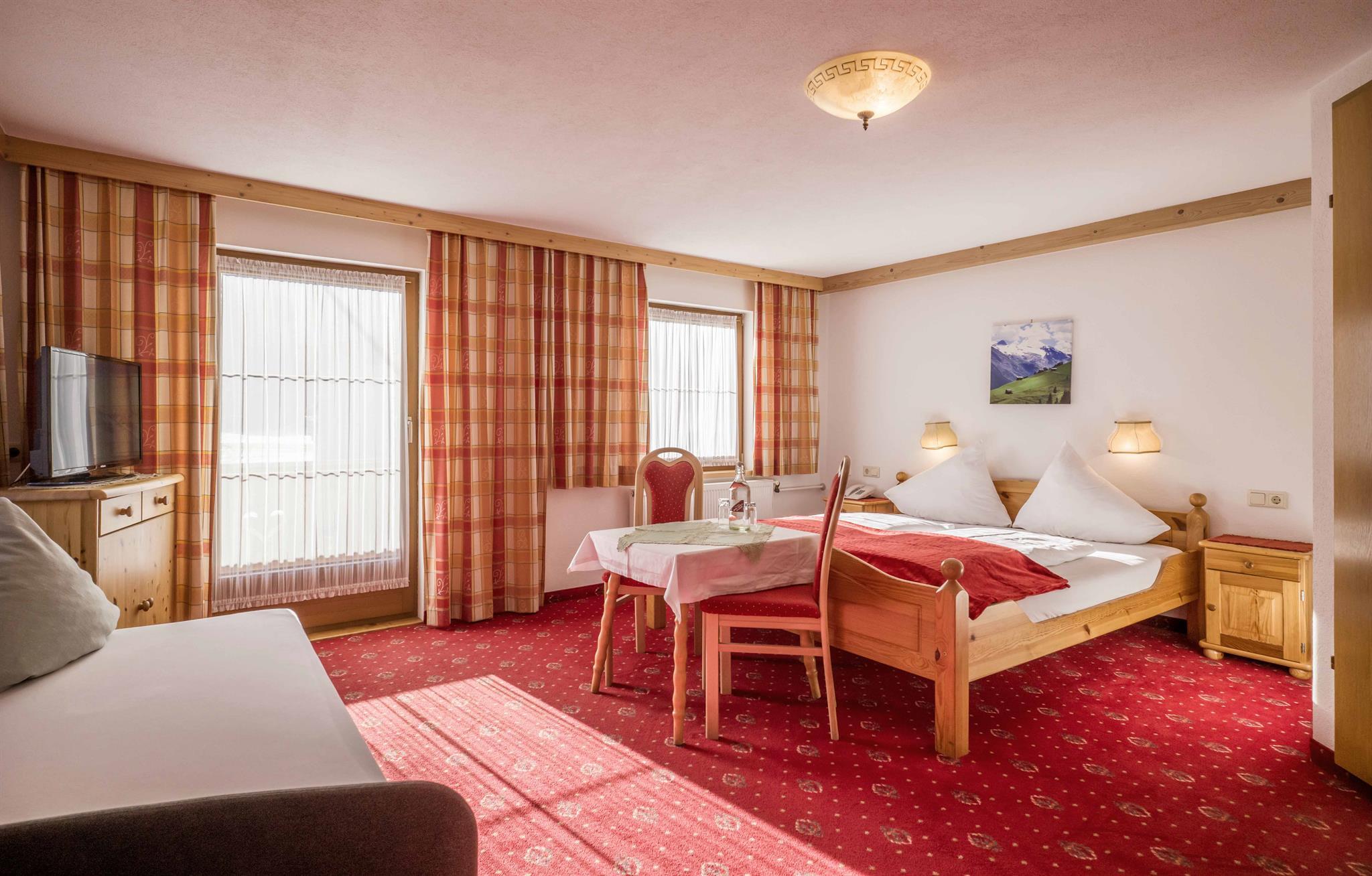 Experience alpine coziness in our traditionally modern double room: With comfortable seating, a minibar, and satellite TV, it offers you the perfect retreat for relaxation. The comfortable bathroom with shower/WC and the cozy west balcony invite you to