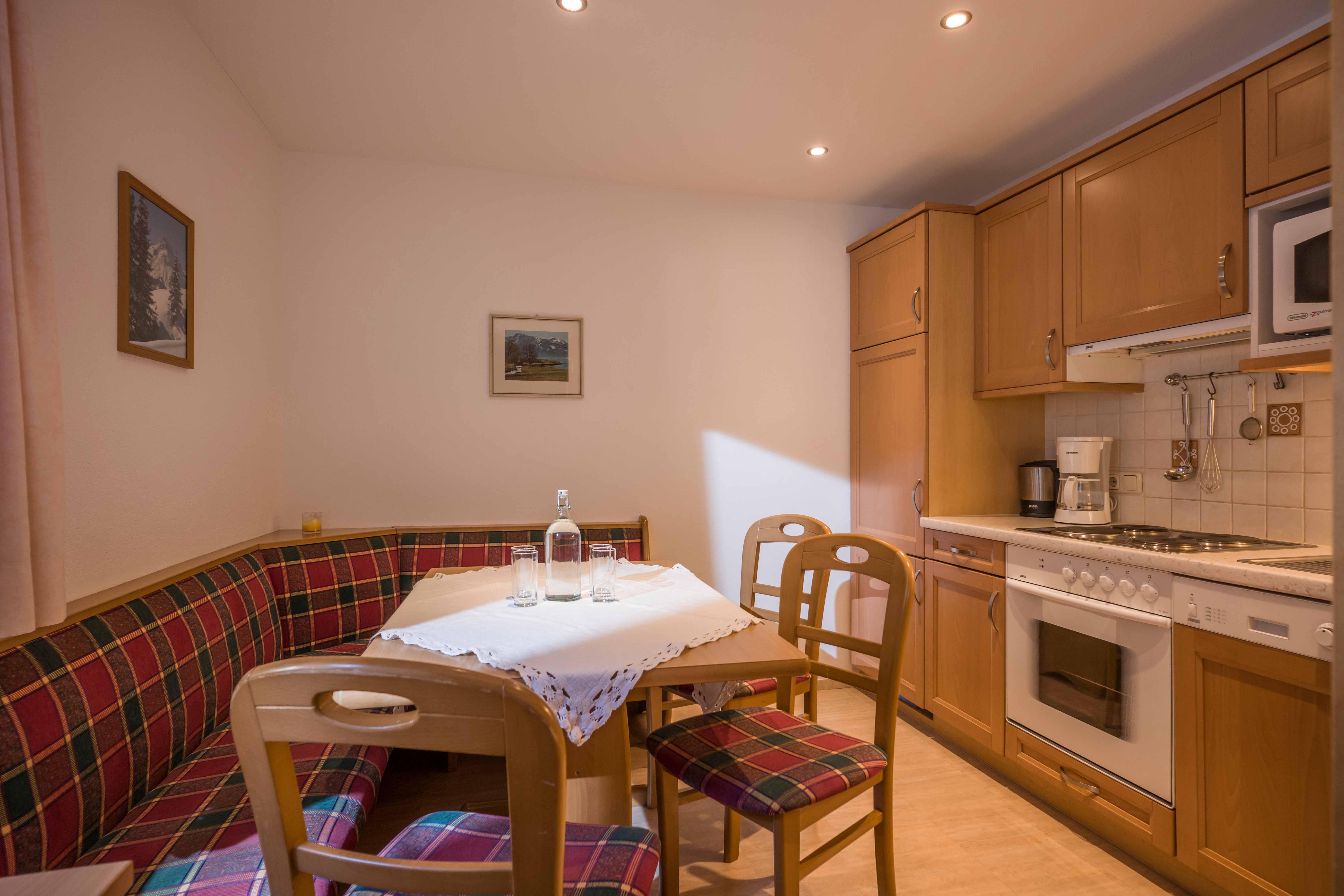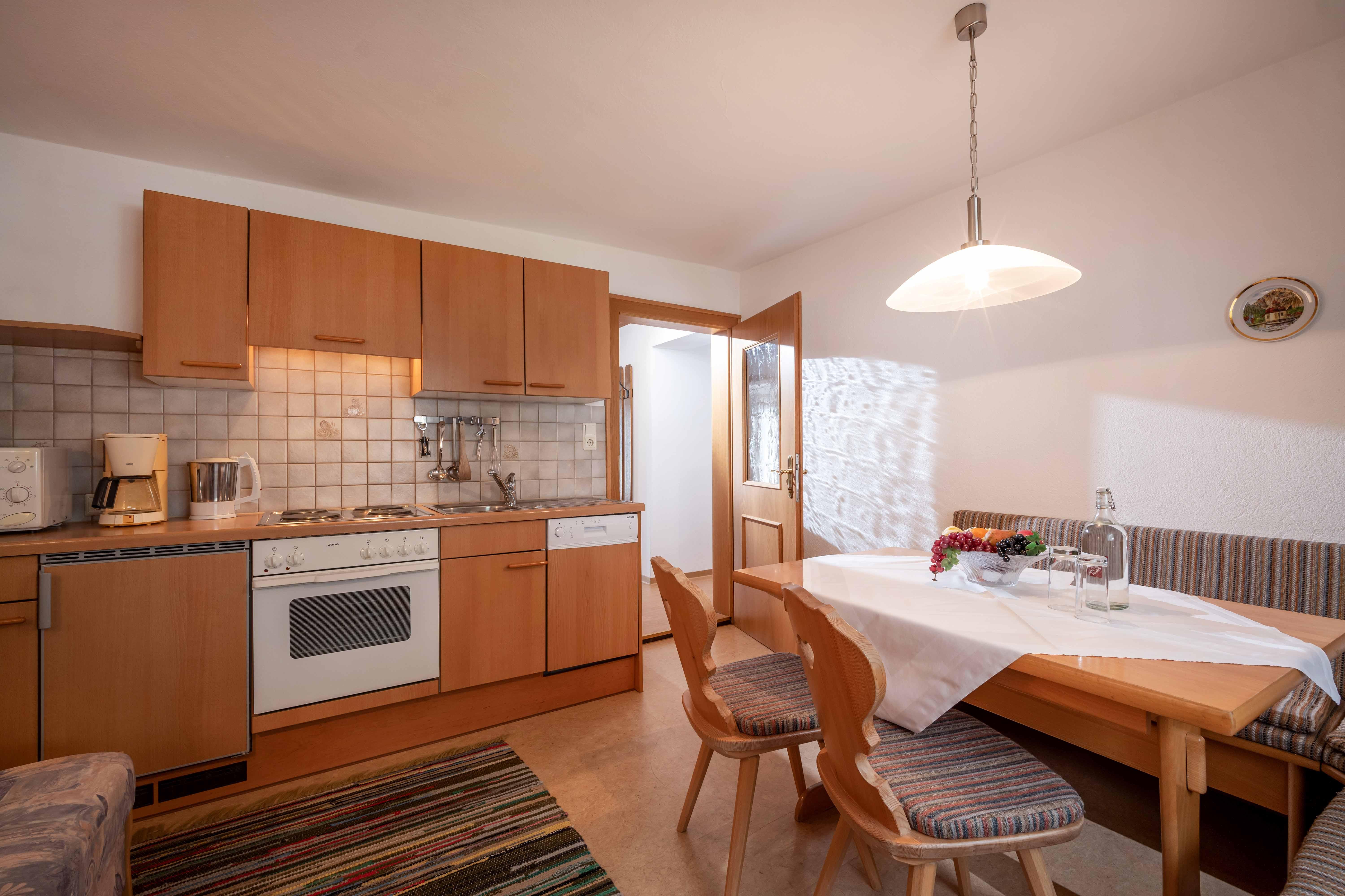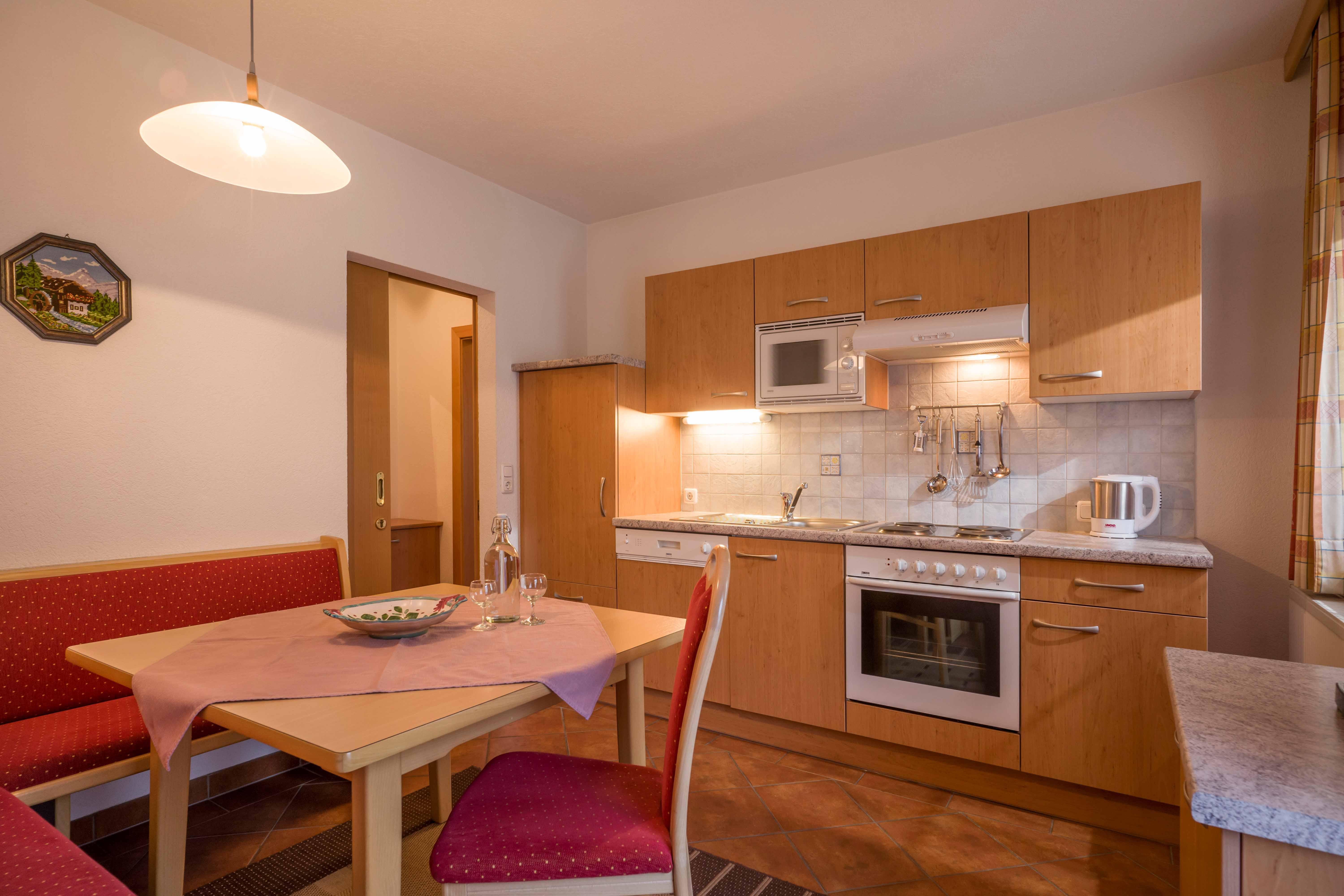 Experience alpine coziness in our charming apartment: Two cozy double rooms of category B with satellite TV, comfortable bathroom with shower/WC, and a cozy shared kitchen with dining area. Enjoy both morning and evening sun on the east and west