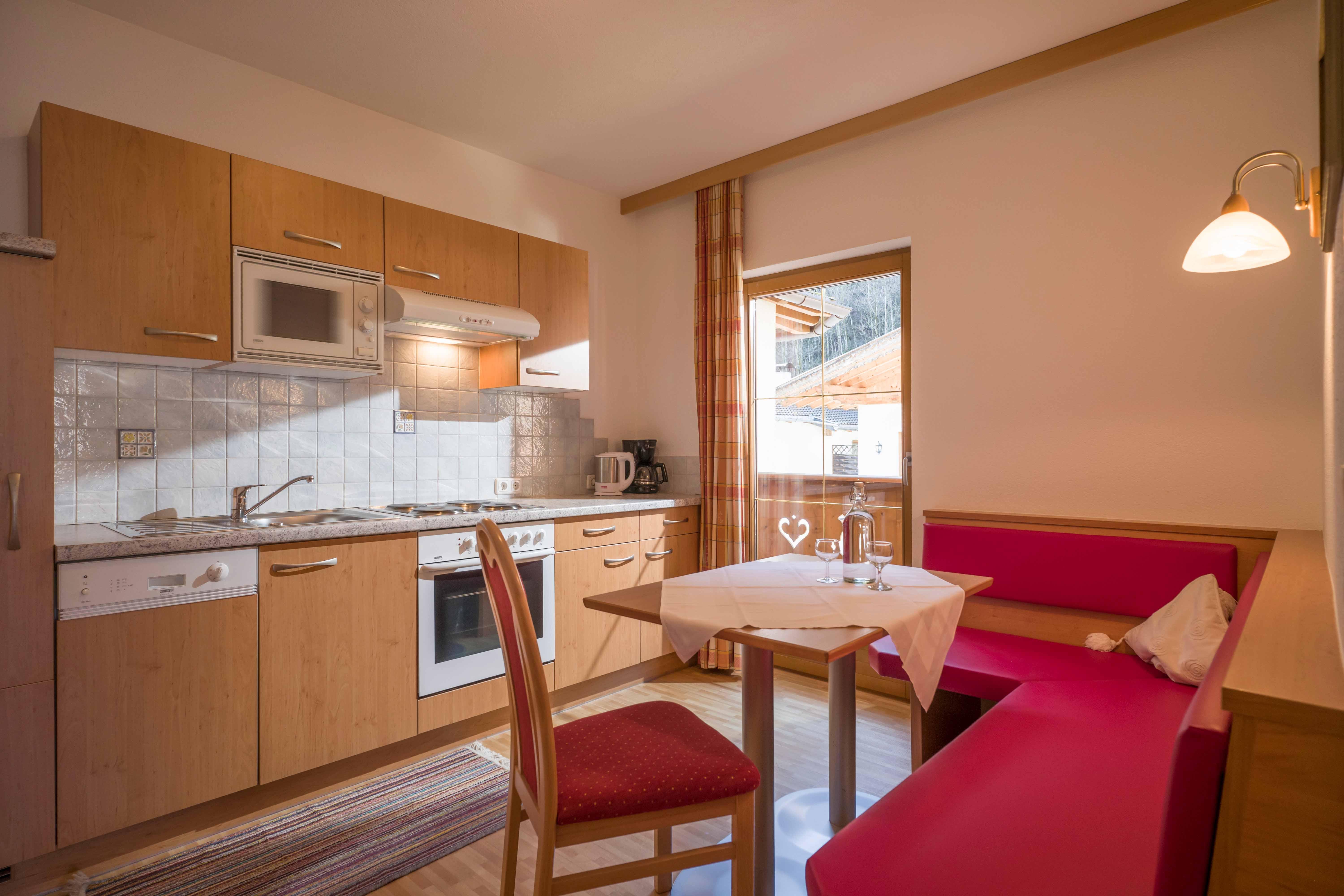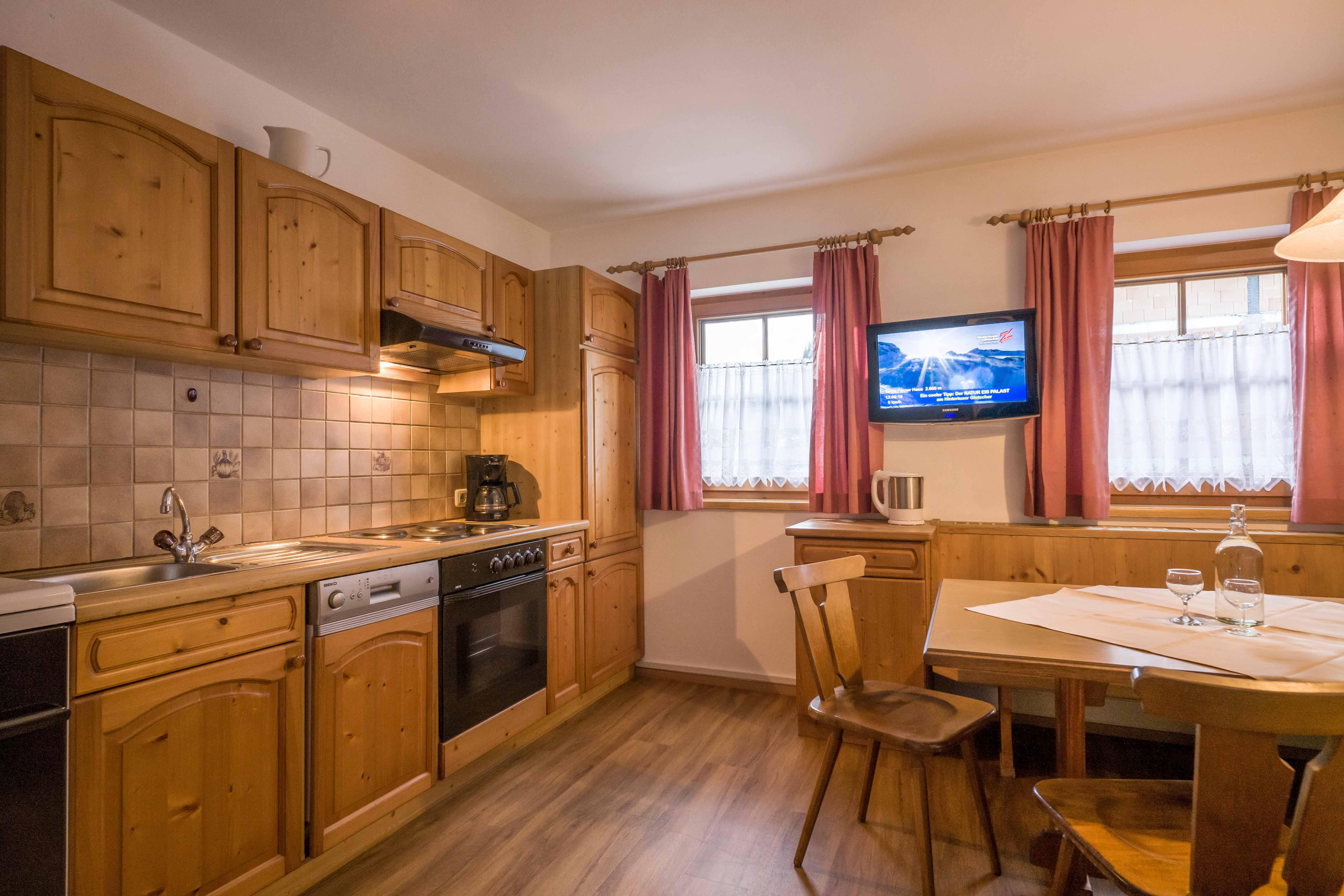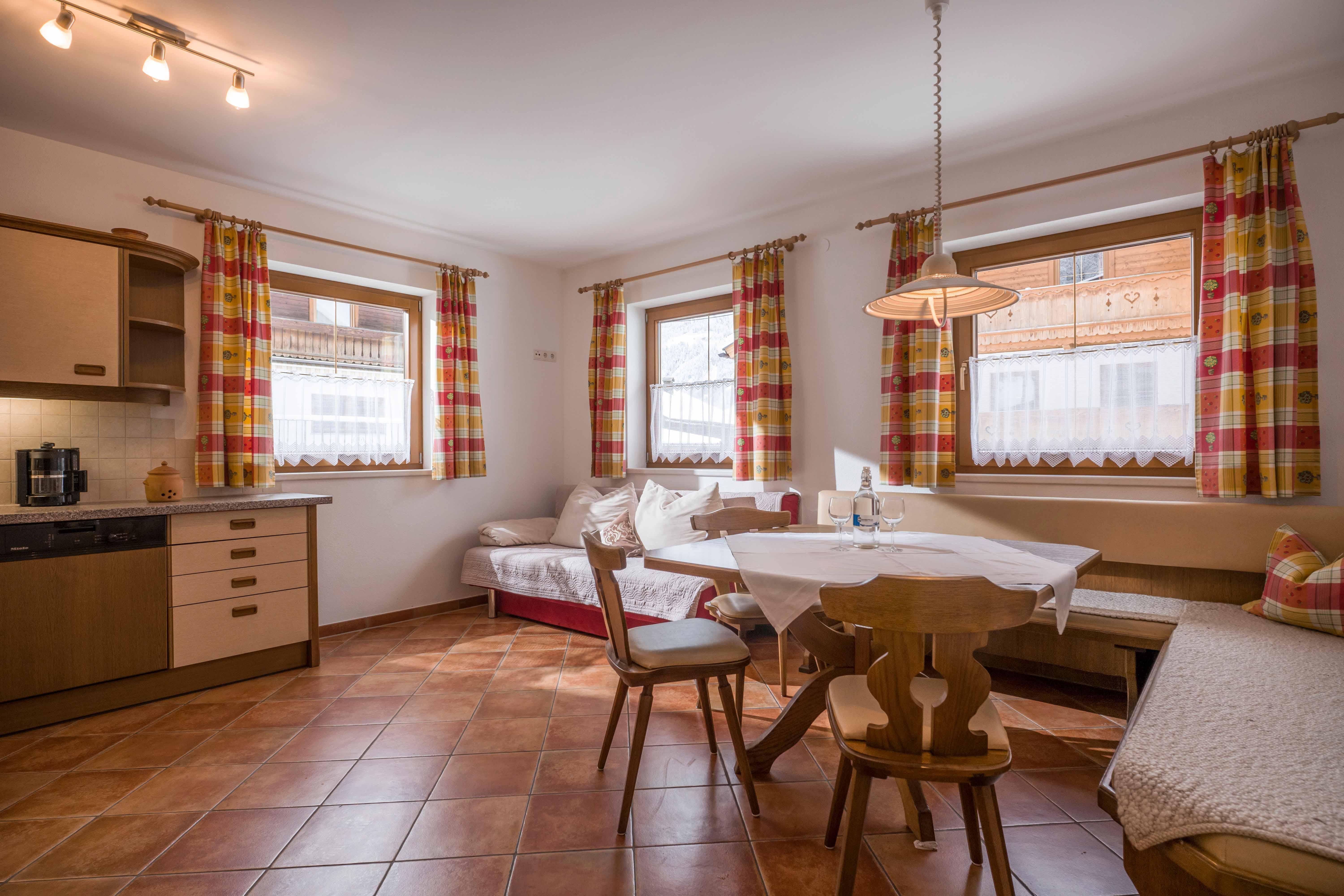 Experience alpine coziness in our charming apartment: Two cozy double rooms of category B with satellite TV, comfortable bathroom with shower/WC, and a cozy shared kitchen with dining area. Enjoy both morning and evening sun on the east and west