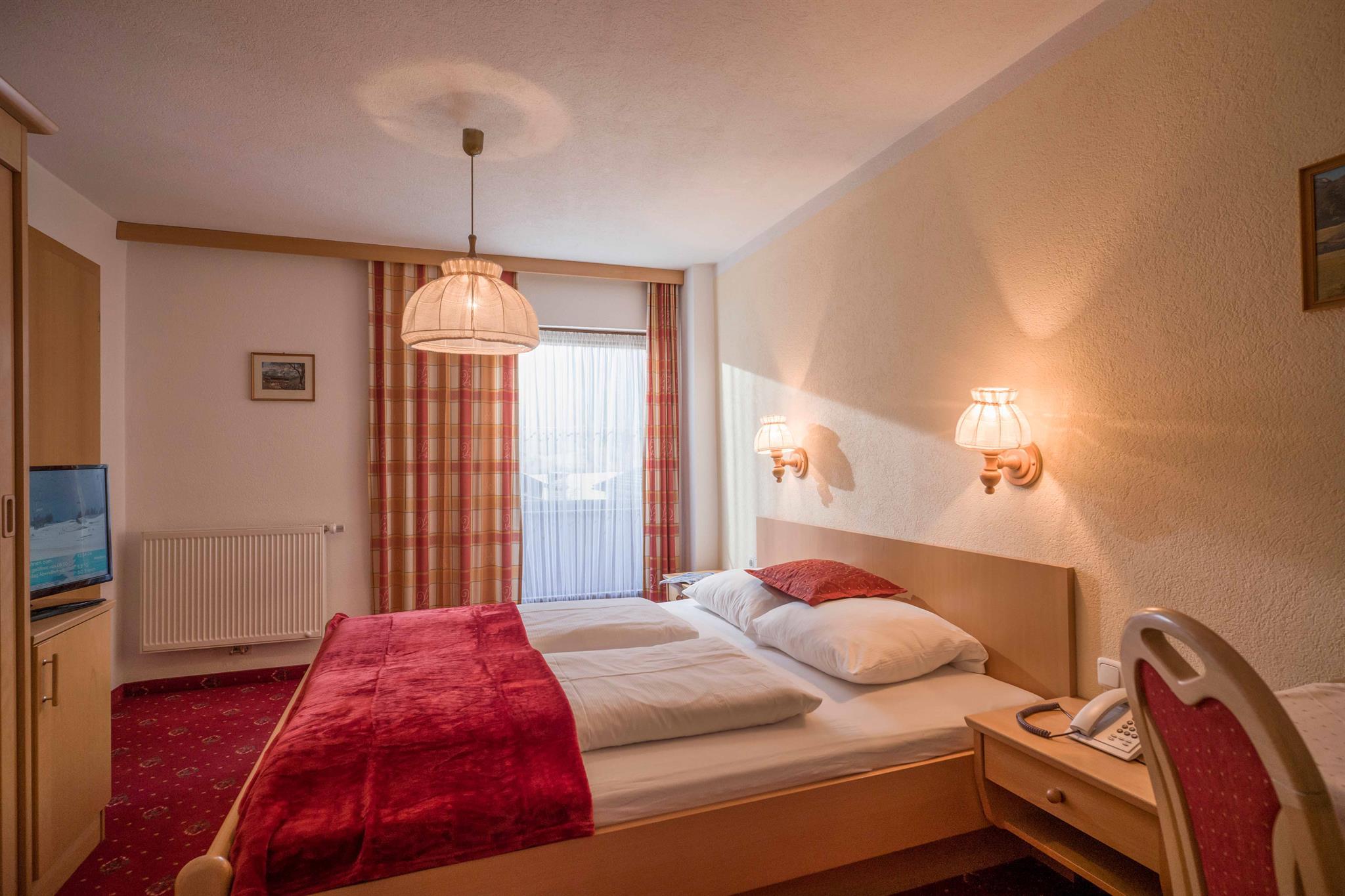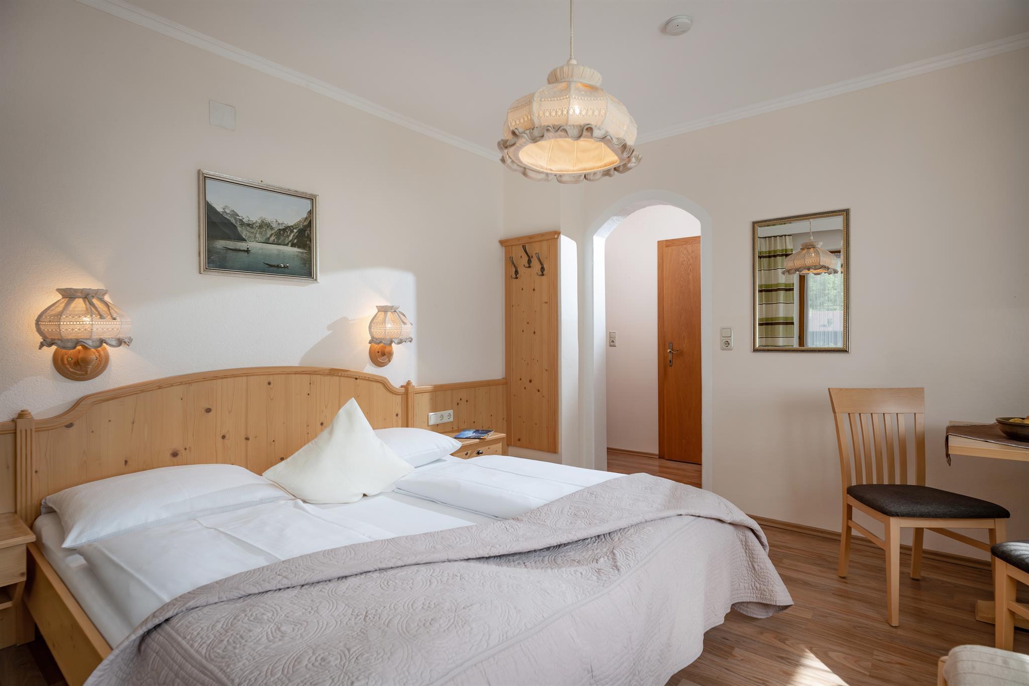 Experience cozy comfort in our charmingly furnished double room: With comfortable seating, a minibar, and satellite TV, you will find your personal retreat after exciting days. The modern bathroom with shower/WC and the French balcony with fresh mountain