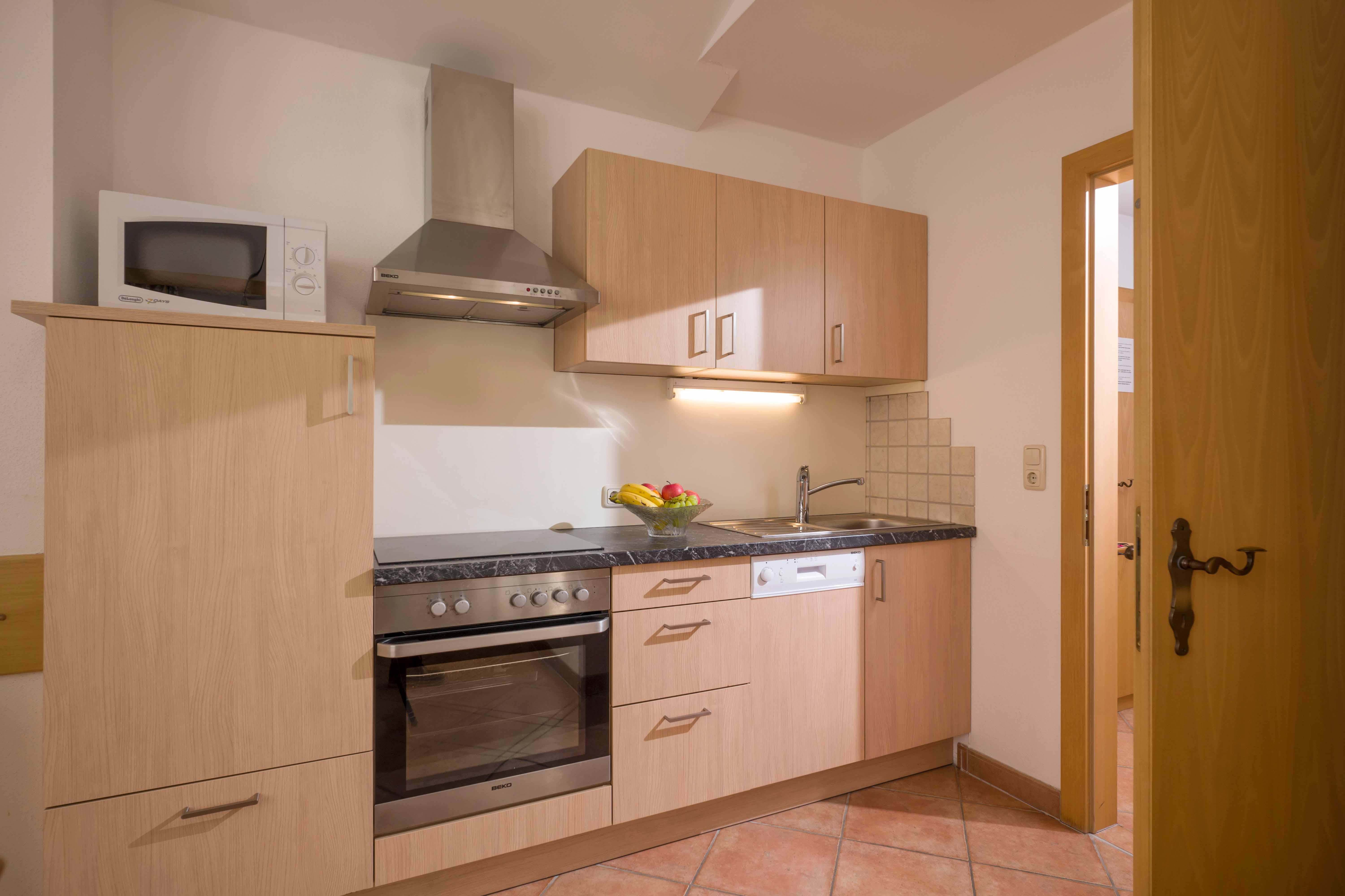 Enjoy stylish comfort in our timelessly modern apartment: An elegant double room in category A with minibar, satellite TV, and a private bathroom with shower/WC offers you high living comfort. The practical kitchenette with dining area invites you to