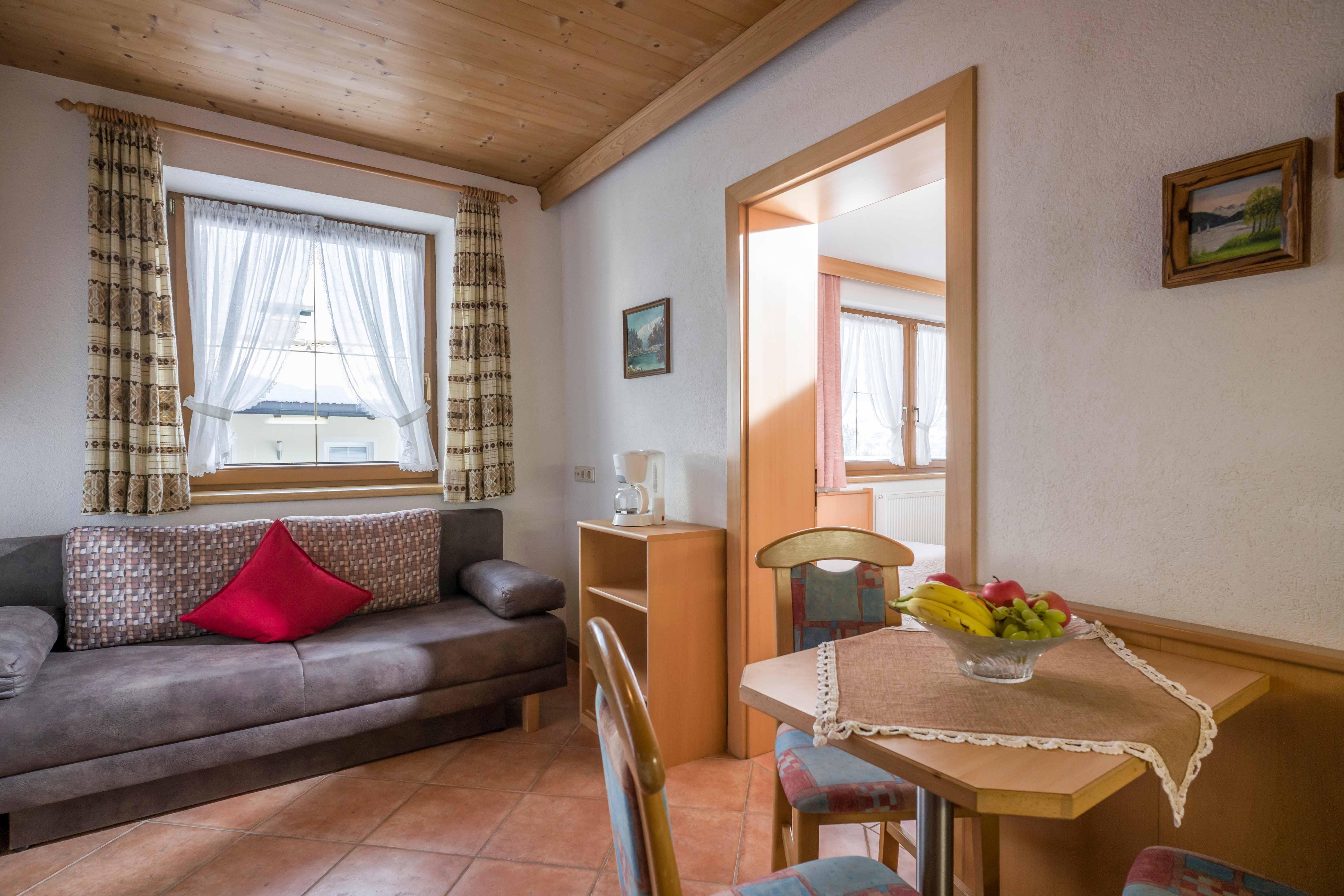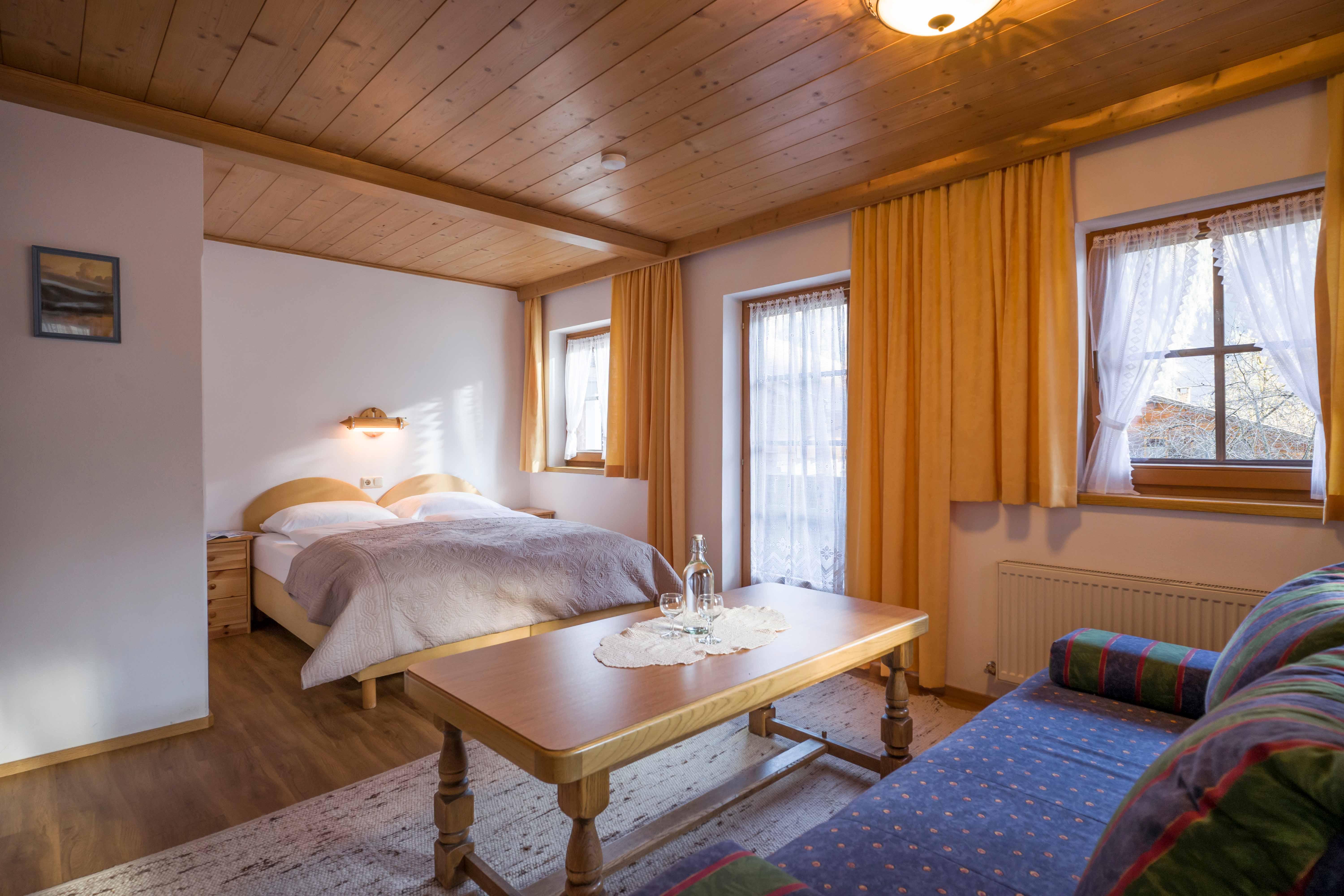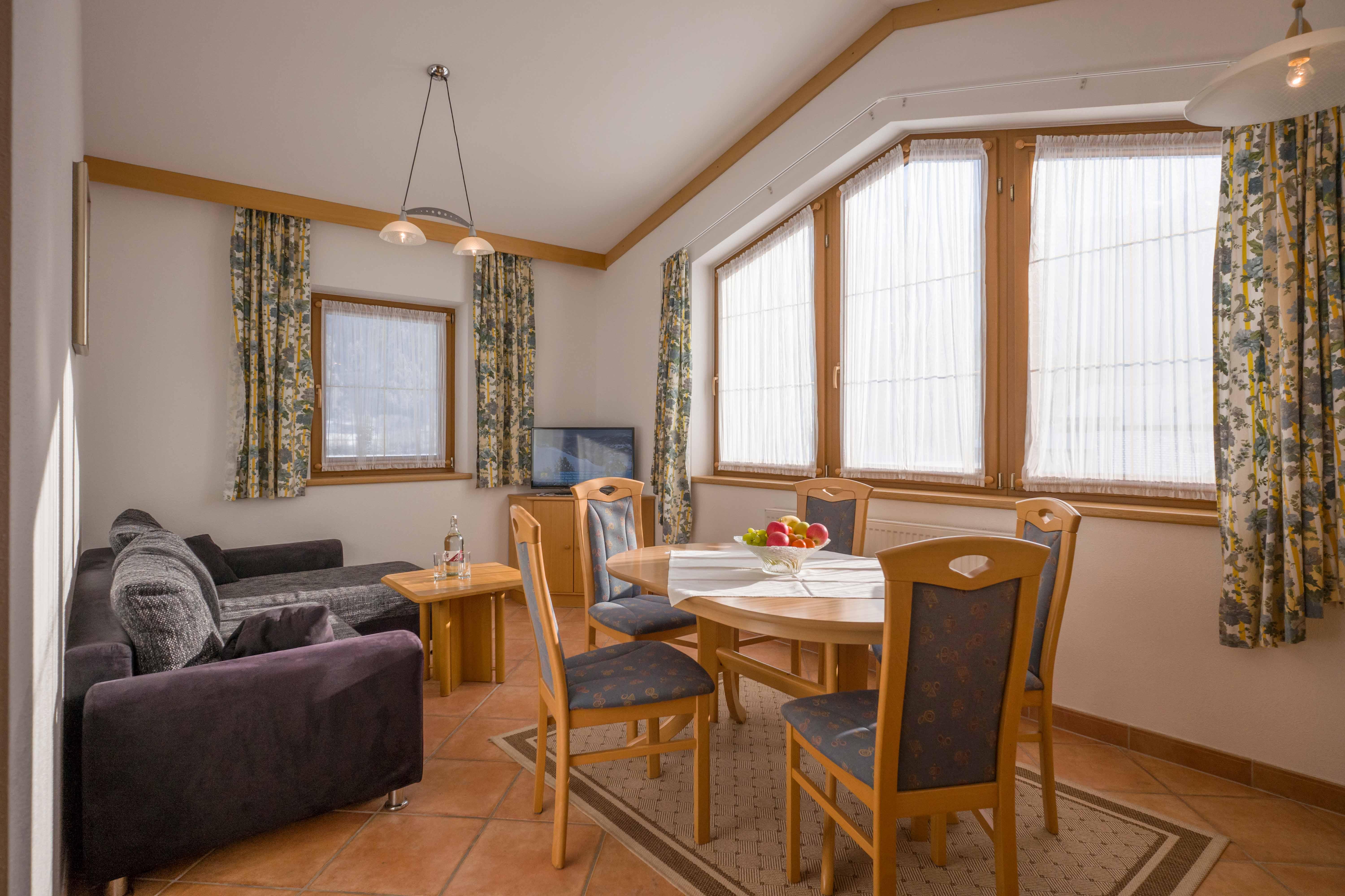 Experience alpine coziness in our charming apartment with a traditionally modern ambiance: A cozy double room of category B with satellite TV, a comfortable bathroom with shower/WC, and an inviting living kitchen with dining area. On the east balcony, you