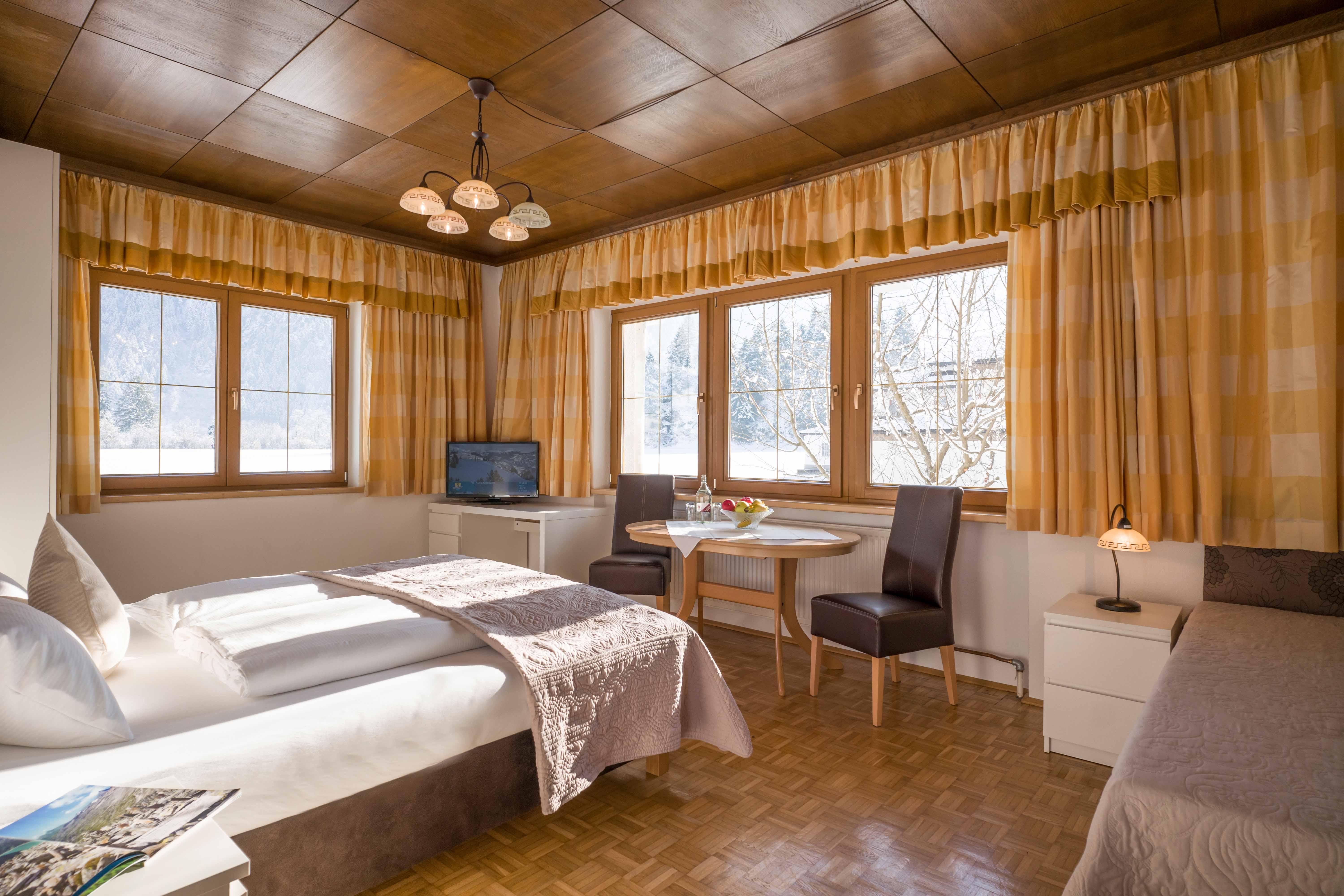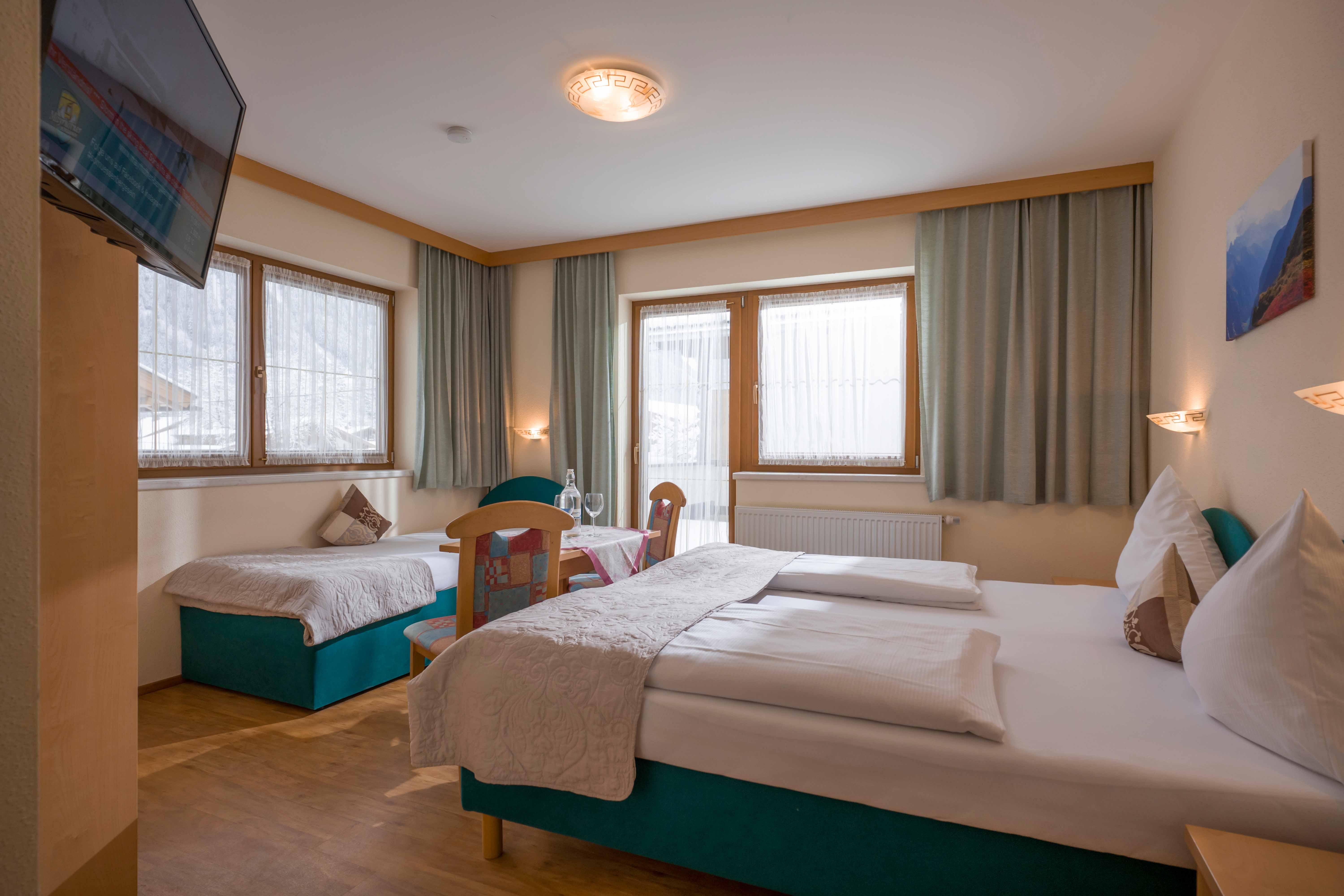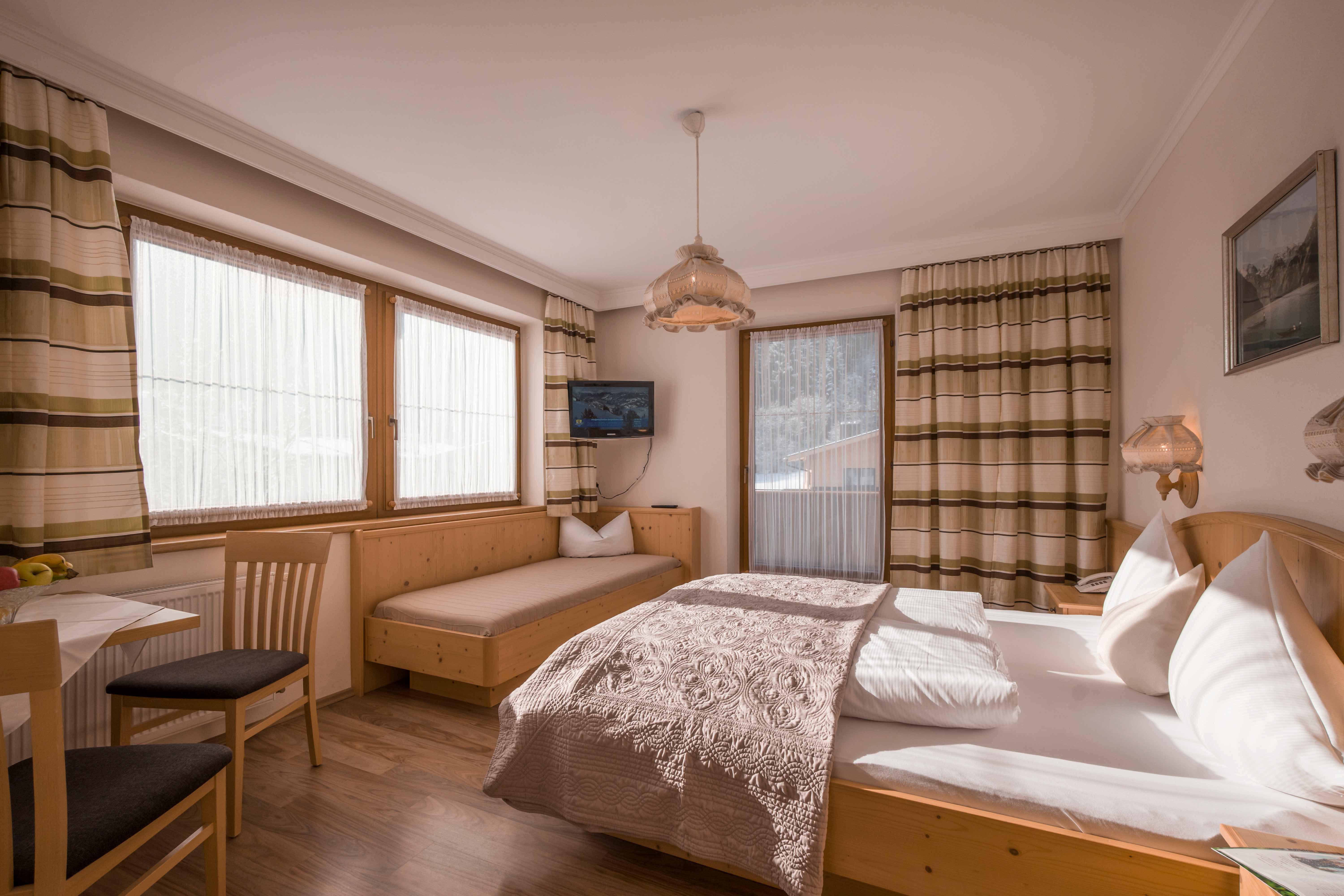 Our bed and breakfast is situated in a beautiful position approx. 1,5km outside of Mayrhofen, and is equipped with a barbeque, plenty of car parking space, guest lounge with a tiled stove, TV room, table tennis summer, play ground, cycle hire, and is next to the ski and village bus stop.