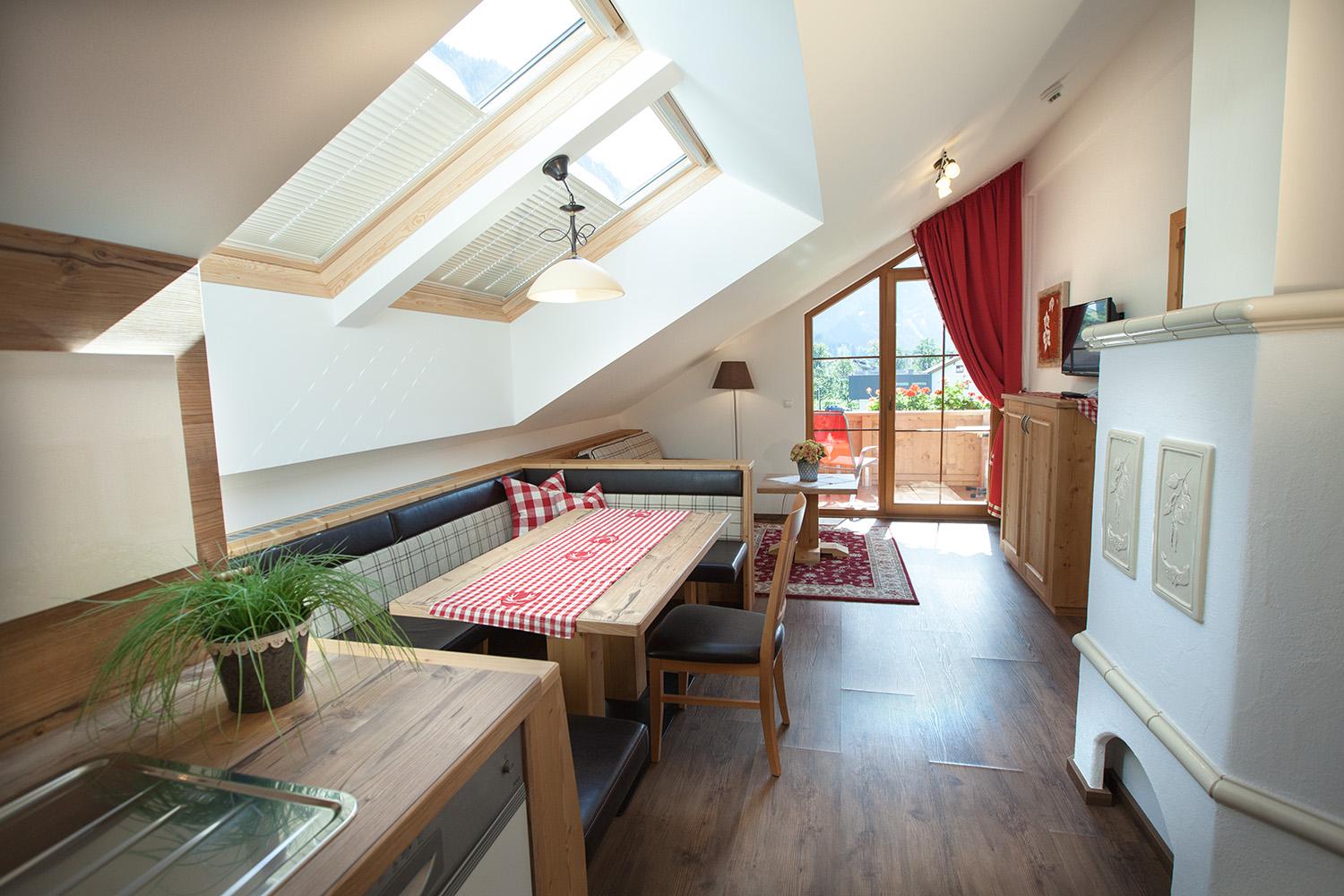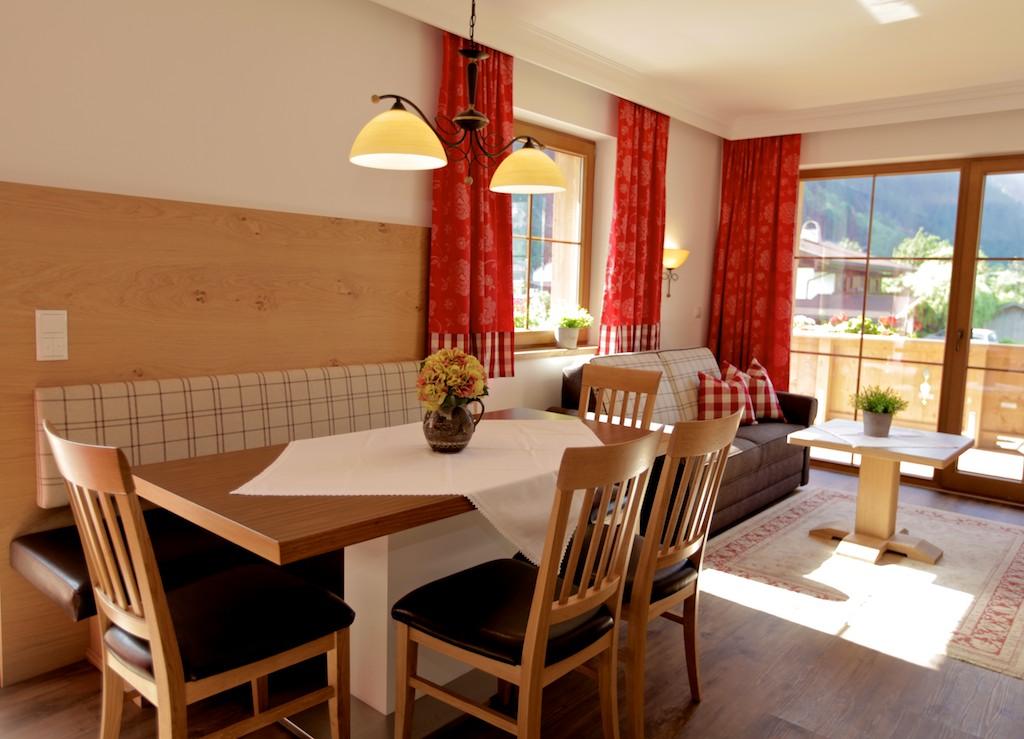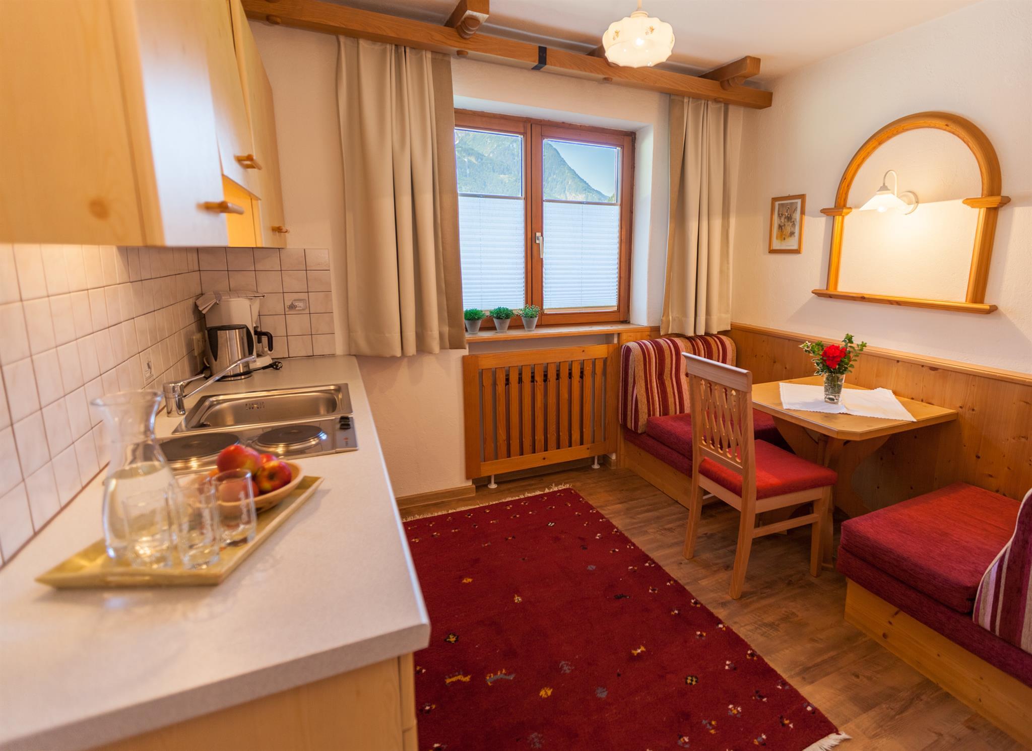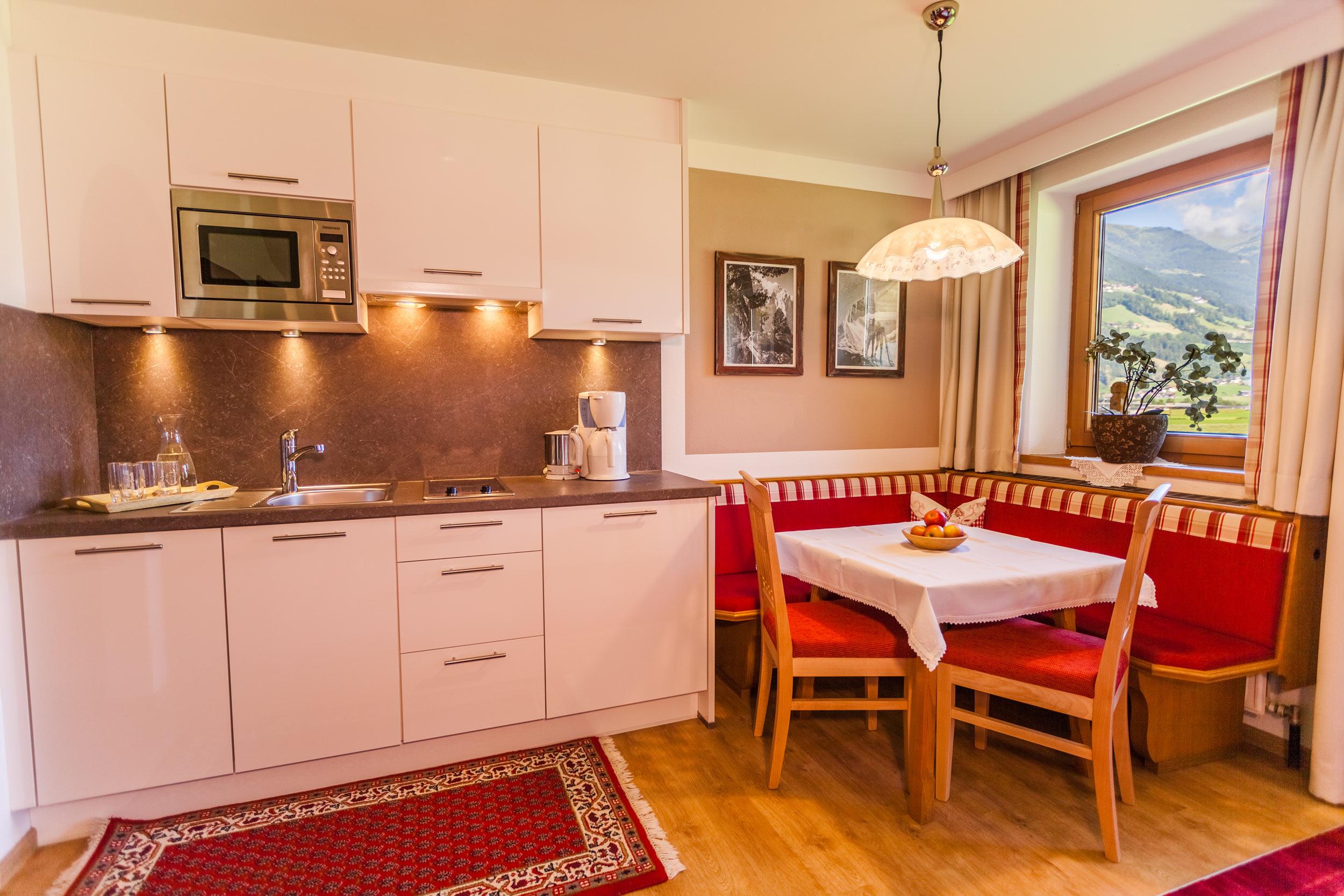 With its 31 m² the apartment Wiesenblick is not only spacious but also has a great view towards Mayrhofen. Equipped with: fully equipped kitchen-cum-living room with a sleeping place for the 3rd person and a comfortable sitting area as well as direct dial