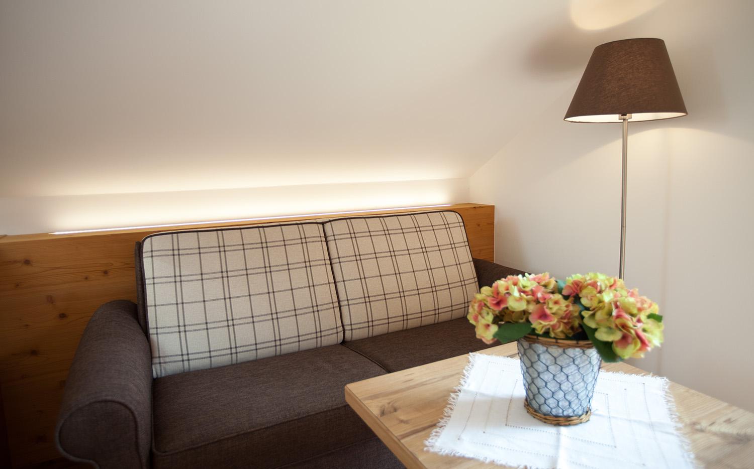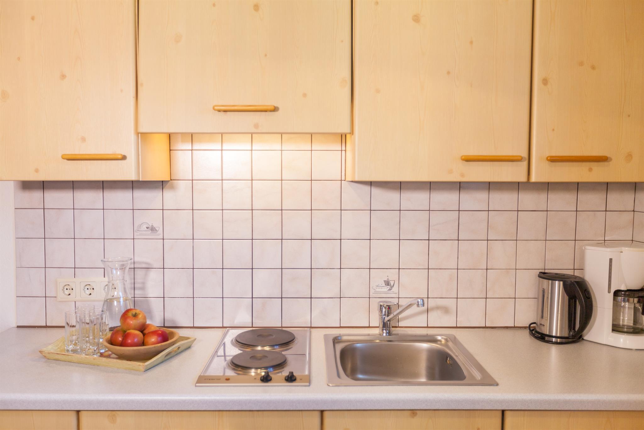 With 2 double rooms, Apartment Sonnenschein (65 m²) is ideal for a family vacation. Fully-equipped kitchen with 4 hot plates, coffee maker, dishwasher, microwave, living room with dining area for 6 people, direct-dial telephone, SA TV, 2 double rooms each