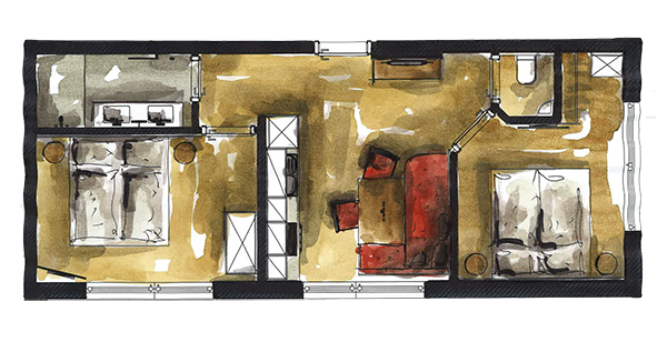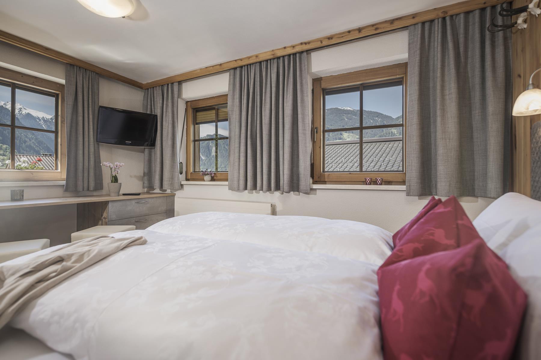 New stylishly furnished apartment for up to 5 people in Zillertal with stunning views across the Zillertal mountains. Stone pine room for 2-3 persons with shower, toilet, hairdryer, satellite TV, balcony Stone pine room for 2 persons with satellite TV