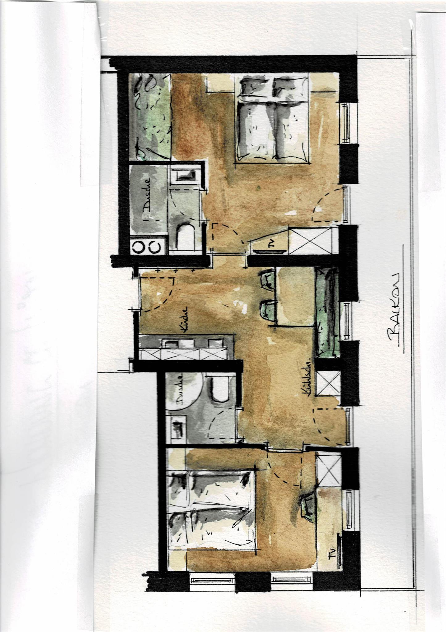 Luxurious penthouse apartment with wonderful view for max. 6 people bedroom for 2 people with shower, WC, hairdryer and TV bedroom for 2-3 people with shower and WC, hairdryer, TV living/ Diningroom with balcony, TV, sofa also for sleeping with