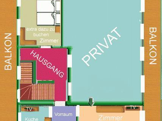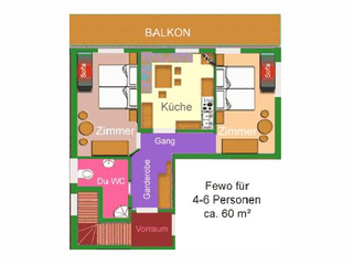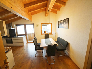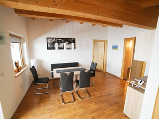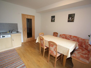 5-6 person holiday apartment No. 3: 60 m², located on the 2nd floor, with a spacious kitchen-living room with satellite TV, an upholstered seating area with a table, chairs and space for up to 8 (possibly with an additional table and chairs) kitchenette,