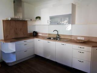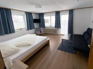 The 75m2 Apartment Schneeflöckchen 1 is located on the ground floor and has 3 double-bedrooms. Double room 1: additional sofa bed, TV, exit terrace Bathroom: double vanity and shower WC: separate Eat-in kitchen: stove, oven, refrigerator, dishwasher,