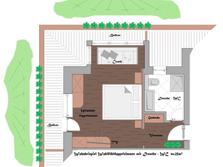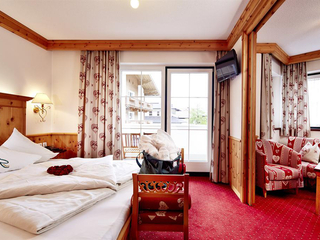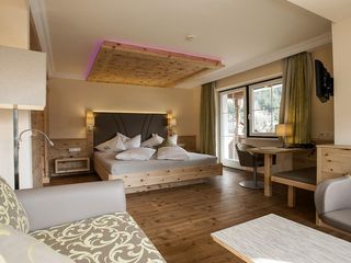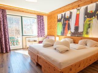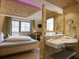 Frida,Homeland,Tyrol,Crystal,Dolce Vita, Flower Power Suiten 28-34 m² 2-4 Personen Non-smoking room Balcony Double bed Cozy sitting area Carpet or parquet floor Bathroom with sink, make-up mirror, shower or bathtub, heated towel rail & separate