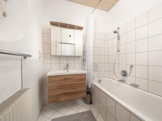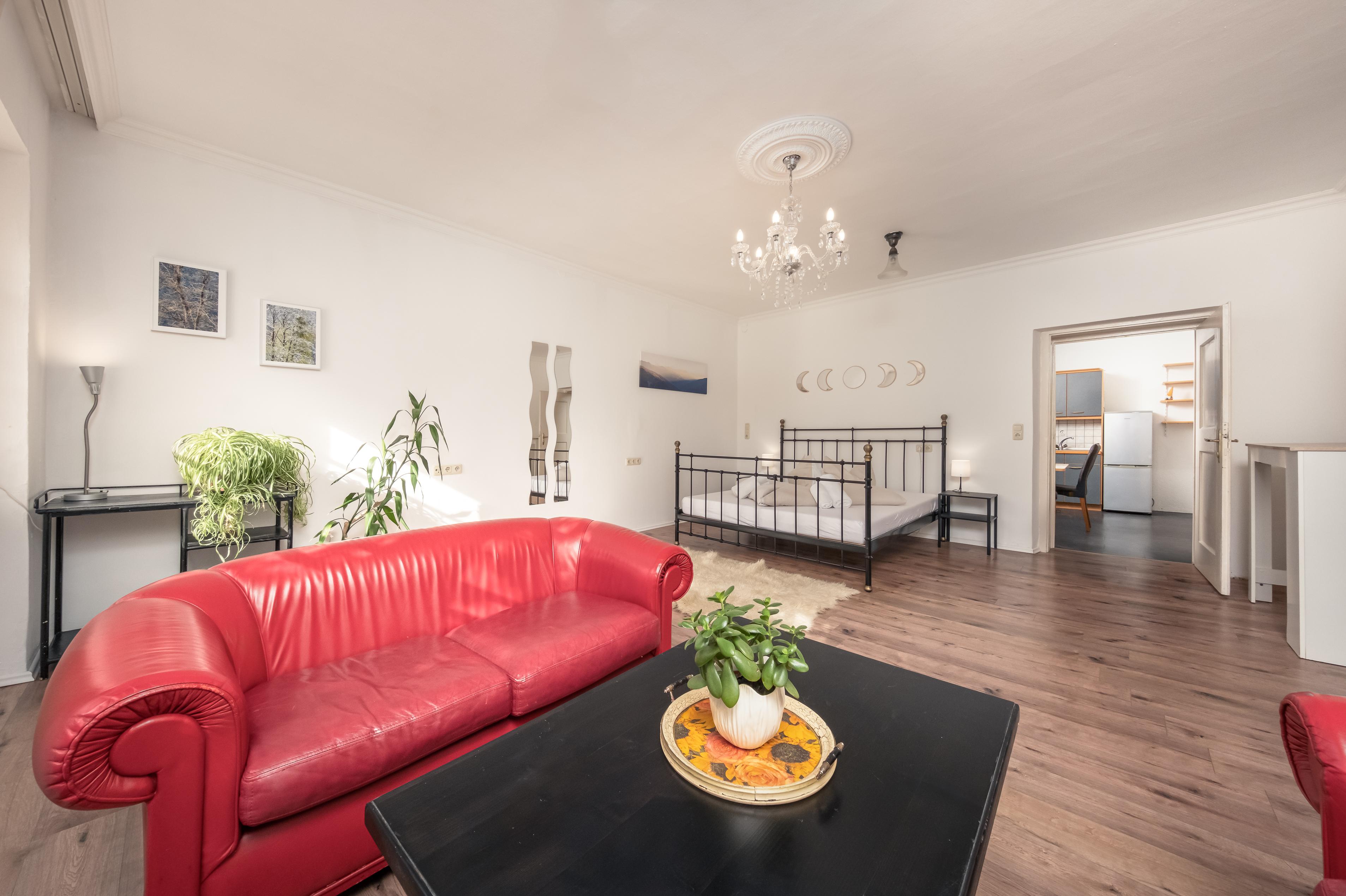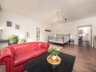 Bright main room: With cozy double bed and living area. Separate kitchen: Fully equipped with stove, oven, refrigerator, and coffee machine. Separate WC: For additional comfort. Bathroom: Bathtub with integrated shower. Large hallway: Plenty of storage