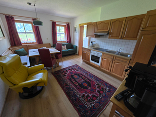 Grosszügige, gemütliche Wohnküche, TV, Radio, WLAN,Balkon, Kühlschrank, Backofen Handtuchservice, Schieraum und Schieschuhtrockner befinden sich im Keller.
